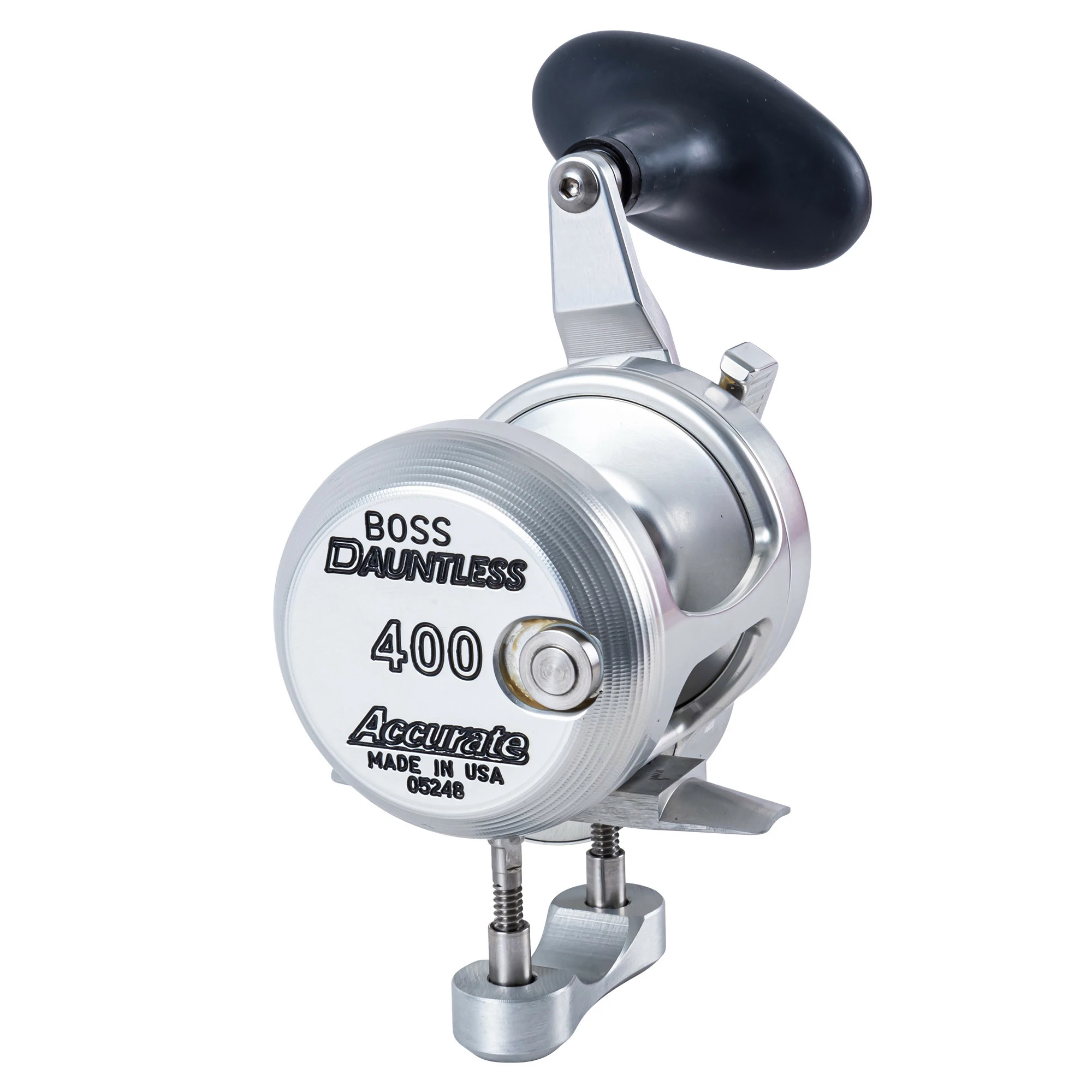 The Accurate Boss Dauntless DX2-400 Two Speed Reel is the pinnacle of the Small Reel, Big Fish movement. Lightweight, strong, and full of torque, this reel has the Accurate-exclusive stainless steel ARB bearing coupled with backup twin synced dogs for the ultimate stopping power. Not only is the Dauntless extremely powerful, but offers the smooth, even, consistent drag of Accurate’s patented TwinDrag®. It has been the reel of choice for top anglers pushing the envelope targeting larger gamefish on smaller conventional reels. The Dauntless was designed for the angler looking to pull out all stops as they take on the largest and strongest gamefish of the world. Dauntless reels are only available in right-hand configuration.
