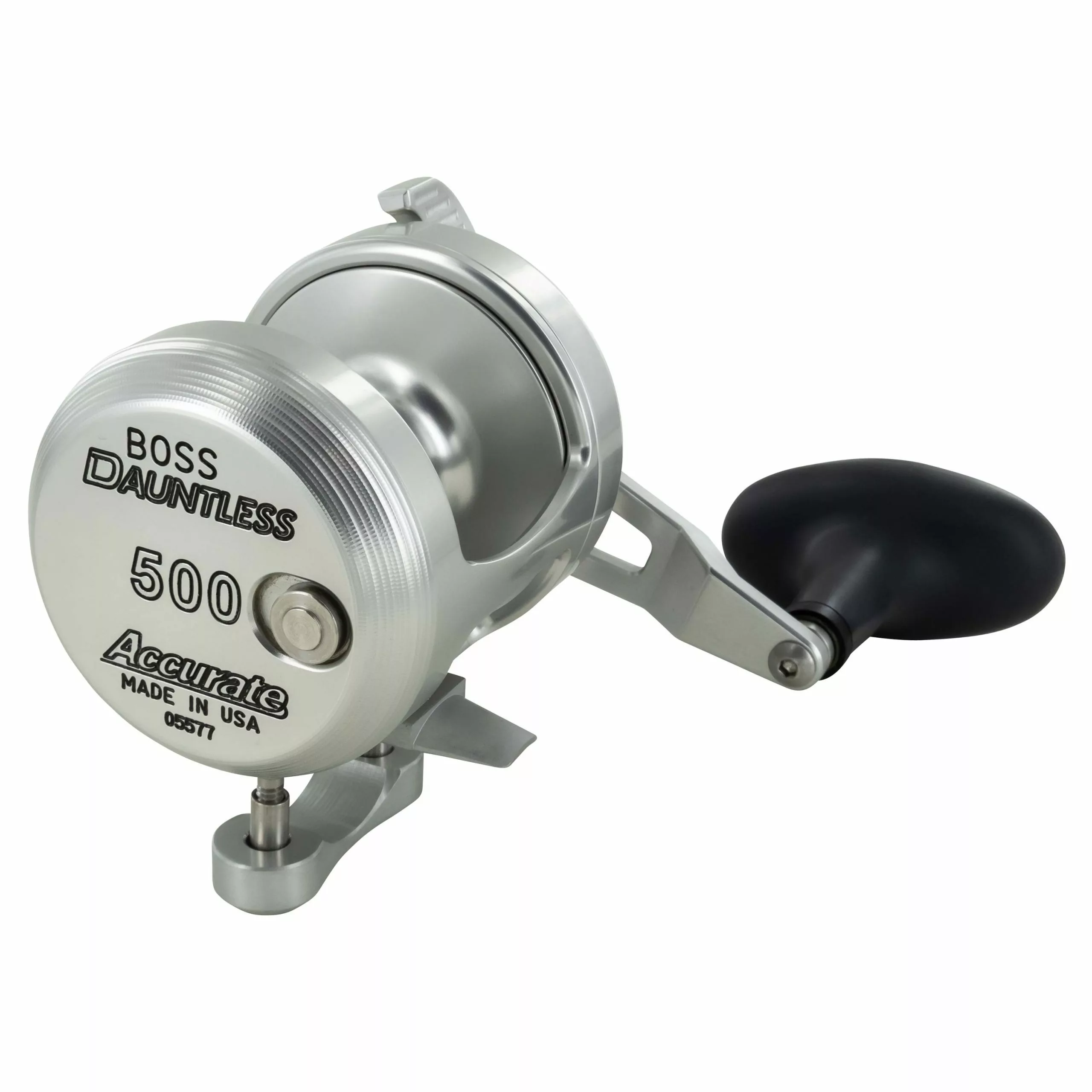 The Accurate Boss Dauntless DX2-500 Two Speed Reel is the pinnacle of the Small Reel, Big Fish movement. Lightweight, strong, and full of torque, this reel has the Accurate-exclusive stainless steel ARB bearing coupled with backup twin synced dogs for the ultimate stopping power. Not only is the Dauntless extremely powerful, but offers the smooth, even, consistent drag of Accurate’s patented TwinDrag®. It has been the reel of choice for top anglers pushing the envelope targeting larger gamefish on smaller conventional reels. The Dauntless was designed for the angler looking to pull out all stops as they take on the largest and strongest gamefish of the world. Dauntless reels are only available in right-hand configuration.