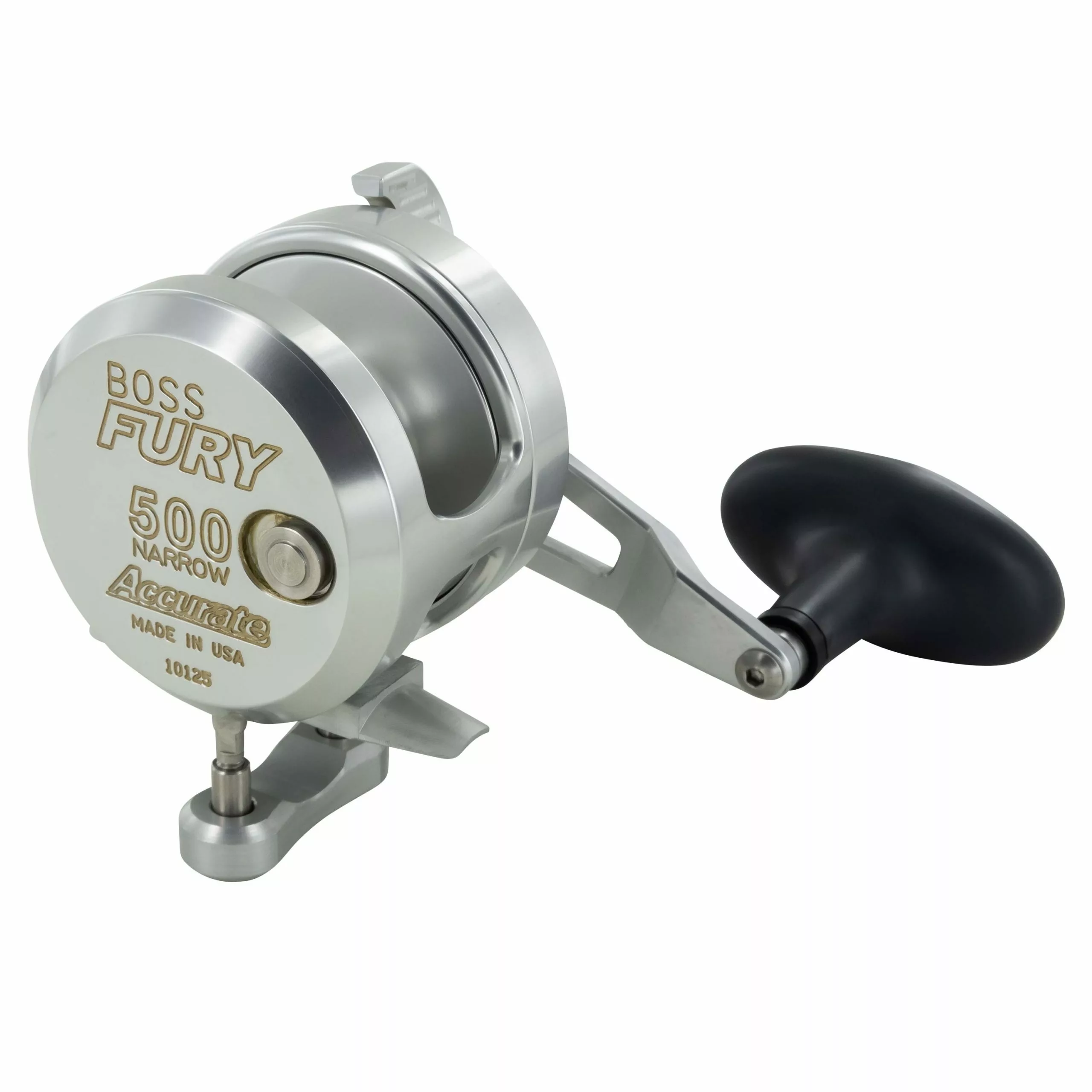 Accurate Boss Fury FX2-500 Two Speed Reels, These reels are designed with all the precision and power you come to expect from Accurate, with competitive pricing for those anglers on a budget looking for the best value. These reels offer the same features as our top of the line reels such as the Accurate-exclusive stainless steel ARB and a sleeved spool for max free spool. Looking for an excellent reel at the right price? The Fury is the reel for you. Fury reels are only available in right-hand configuration..