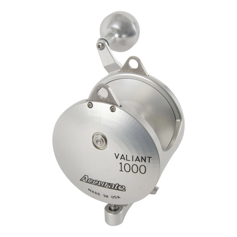 The Accurate Valiant 1000 Two Speed Reels are a new generation of reels focusing on Small Reels Big Fish built exclusively for braid. This series of reels were designed with Precise, Powerful Performance in mind. These reels are proven globally in a very limited amount of time. The Valiant series of reels with their unique shape design, focus on more curvature lines that create strength but also reduce weight of the reels. This gives you reels that are comfortable to fish with all day while being able to put out at least 20 lbs of drag with even the smallest size. Built with the best materials including 6061 T6 aircraft aluminum, 17-4 stainless steel gears plus shaft, with a new stainless steel ARB Bearing, these reels are made to put out some power. If its Pelagic game fish or fishing coastally for your favorite quarry, the Valiant coupled with today’s lightweight graphite composite rods gives anglers a lightweight, powerful combo for hours of fishing pleasure.
