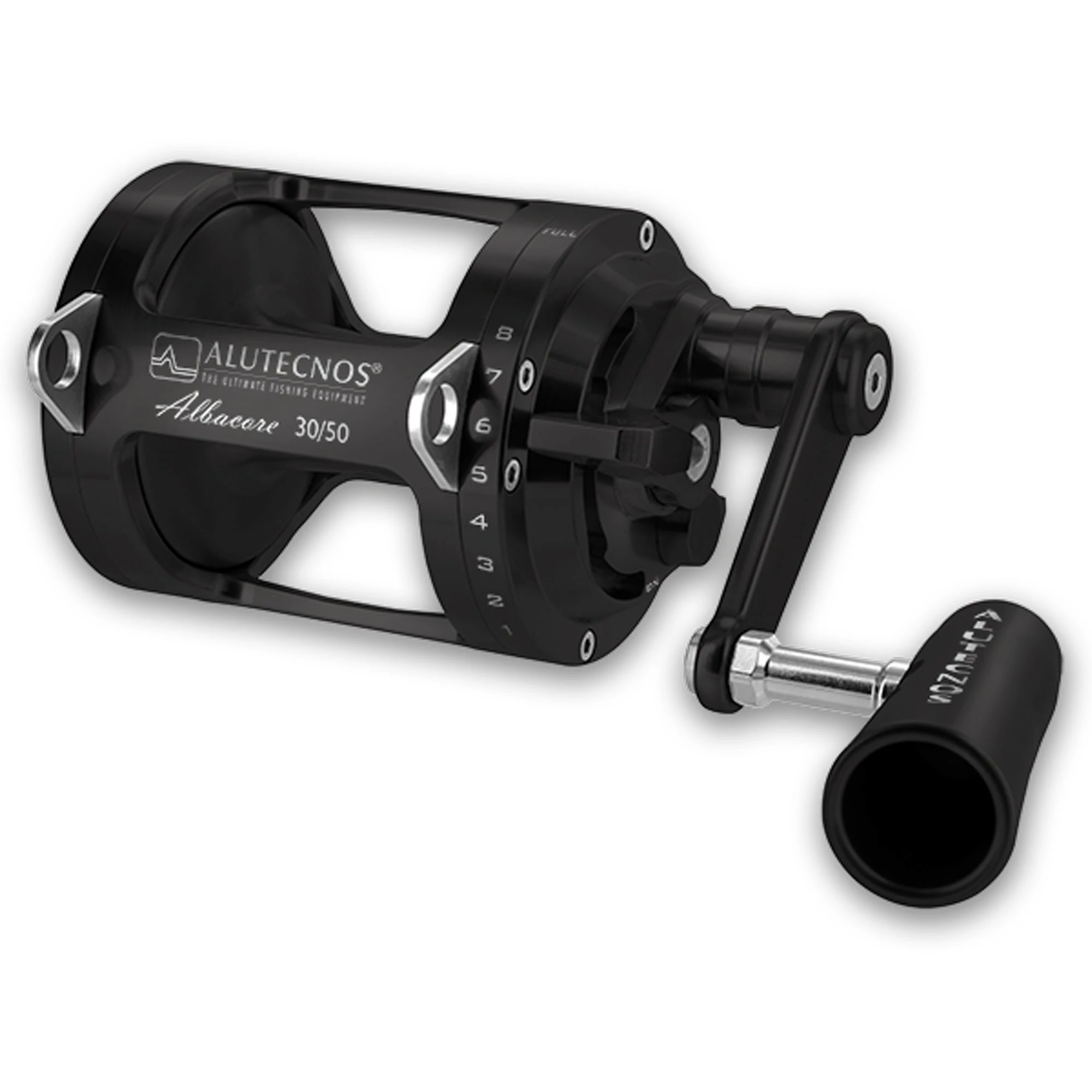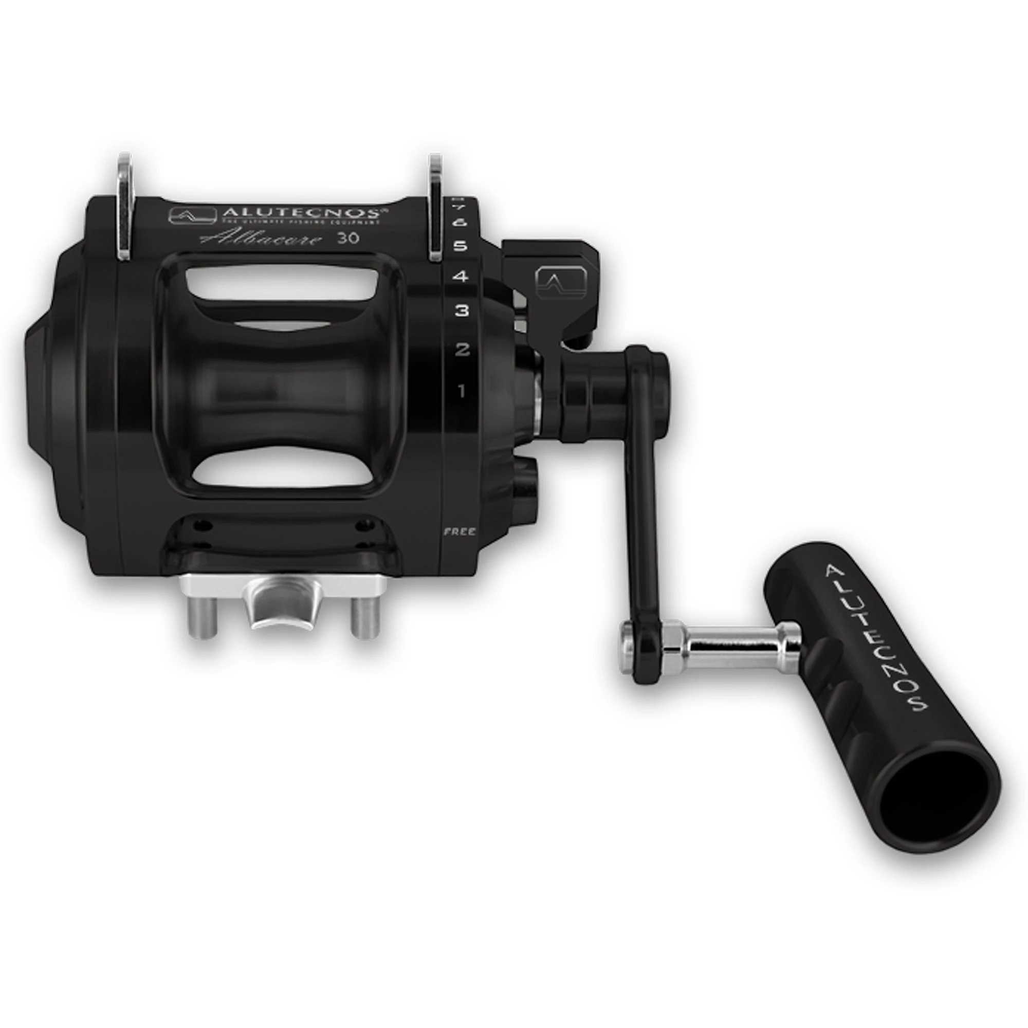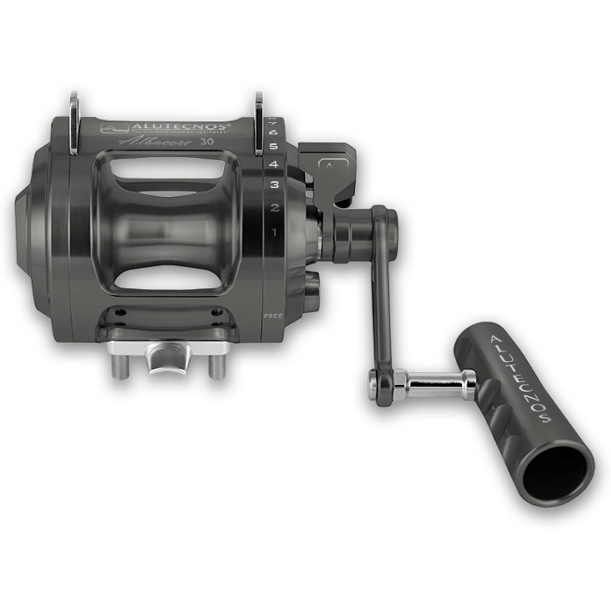 Alutecnos Albacore 30 & 30/50 Single Speed Reels are the culmination of a collaborative effort involving all of the staff at Alutecnos. A commitment aimed not only at improving the technological content, but also at paying attention to design. The result is a product that stands out for aesthetic and technical aspects with outstanding attention to details. Such details include the infinite “antireverse” system applied to trolling reel for the first time. The frontal cam and lock release button for placing the automatically rearming gear lever into “free” or “full” mode. Five bearings and gears made from tempered stainless steel guarantee further resistance from corrosion. The system for anchoring the reel to the rod is robust and reliable using four anchor screws. The drag washer is made from the latest carbon composite and is appropriately protected to ensure smooth and consistent use during the most intense battles, the occurrence of “stick-slip” is virtually eliminated. All of the aluminum parts have been buffed ultrasonically cleaned, polished and anodized with a gold or silver finish. All of the parts have been machined from bars using CNC working processes and are subjected to rigorous dimensional and quality control checks. Particular attention is paid to processing cycles and the careful selection of the highest quality of raw materials and components available. The results in a technically perfect product.