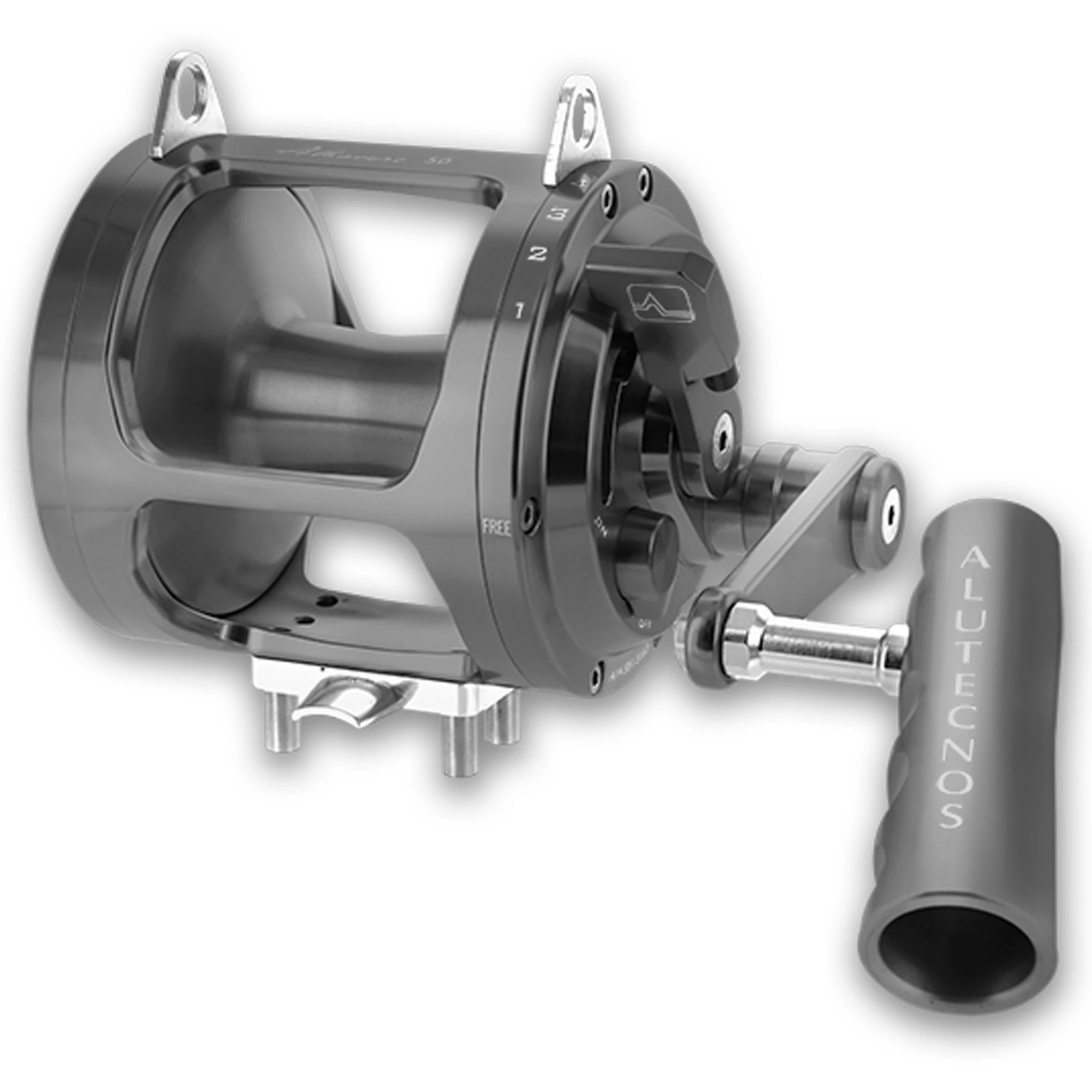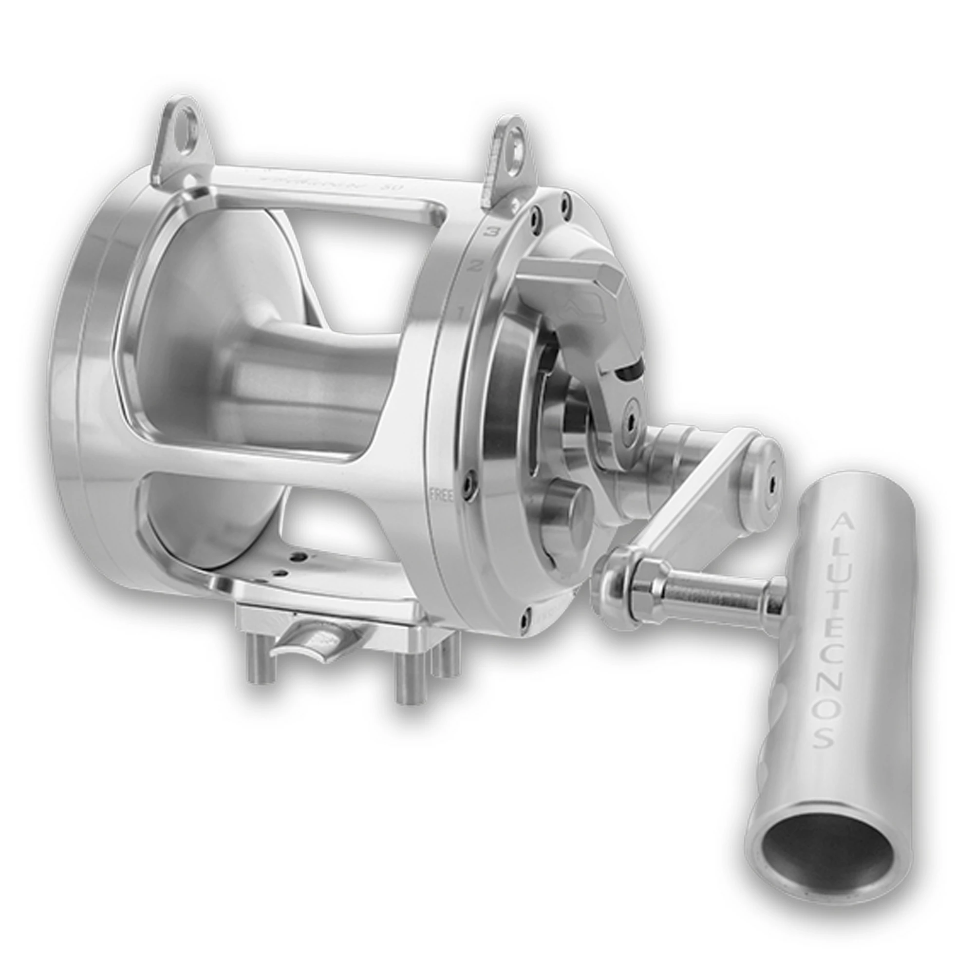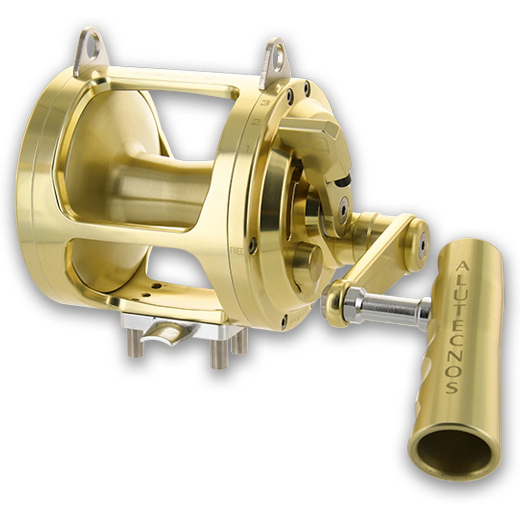 The design and manufacturing process of Albacore reel stems from a collaborative effort involving all of the staff at Alutecnos. A commitment aimed not only at improving the technological content, but also at paying attention to design. The result is a product that stands out for aesthetic and technical aspects with outstanding attention to details. Such details include the infinite “antireverse” system applied to trolling reel for the first time. The frontal cam and lock release button for placing the automatically rearming gear lever into “free” or “full” mode. Five bearings and gears made from tempered stainless steel guarantee further resistance from corrosion. The system for anchoring the reel to the rod is robust and reliable using four anchor screws. The drag washer is made from the latest carbon composite and is appropriately protected to ensure smooth and consistent use during the most intense battles, the occurrence of “stick-slip” is virtually eliminated. All of the aluminum parts have been buffed ultrasonically cleaned, polished and anodized with a gold or silver finish. All of the parts have been machined from bars using CNC working processes and are subjected to rigorous dimensional and quality control checks. Particular attention is paid to processing cycles and the careful selection of the highest quality of raw materials and components available. The results in a technically perfect product.