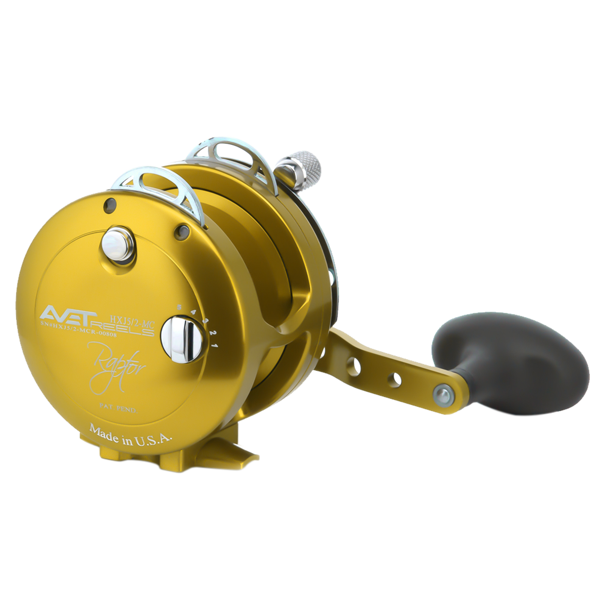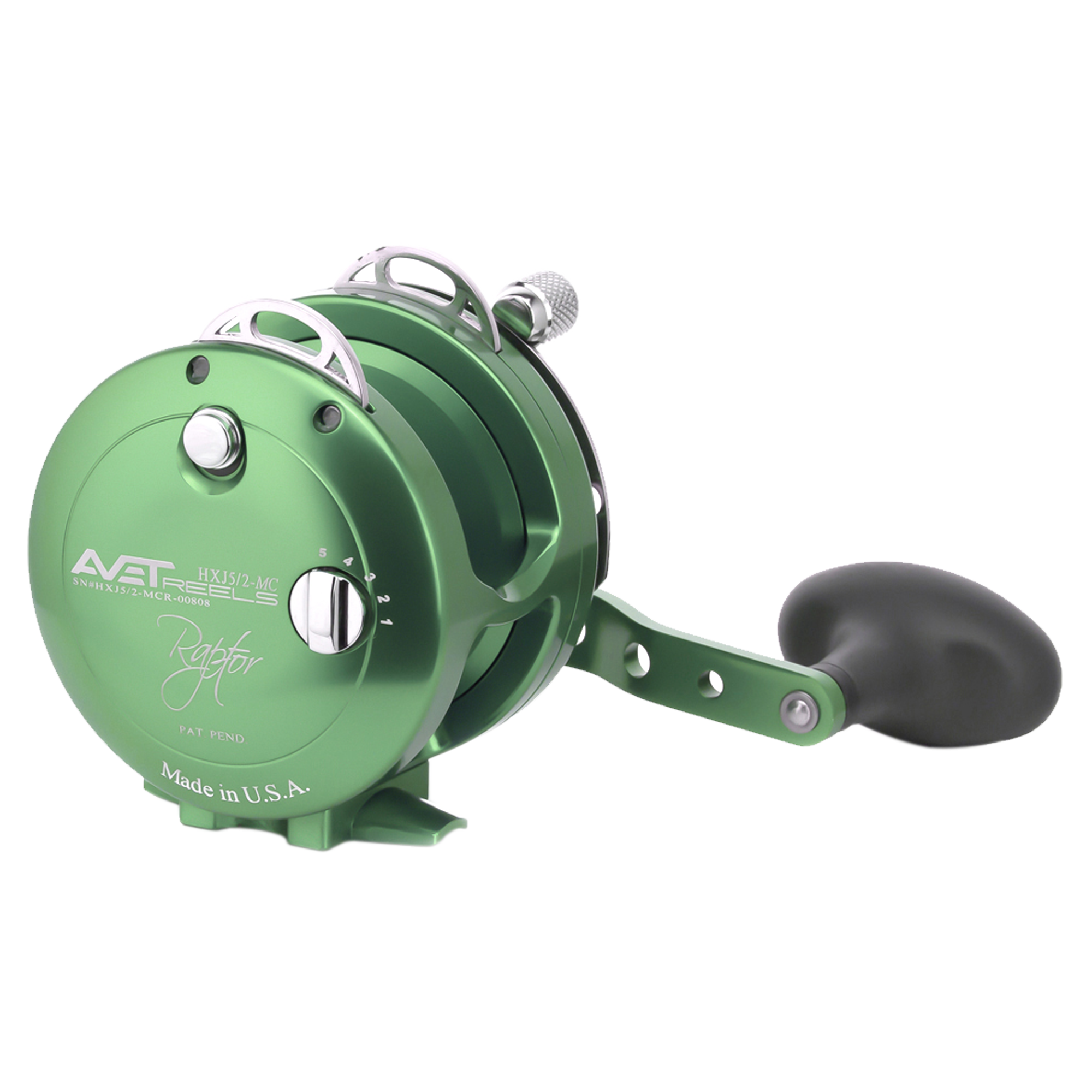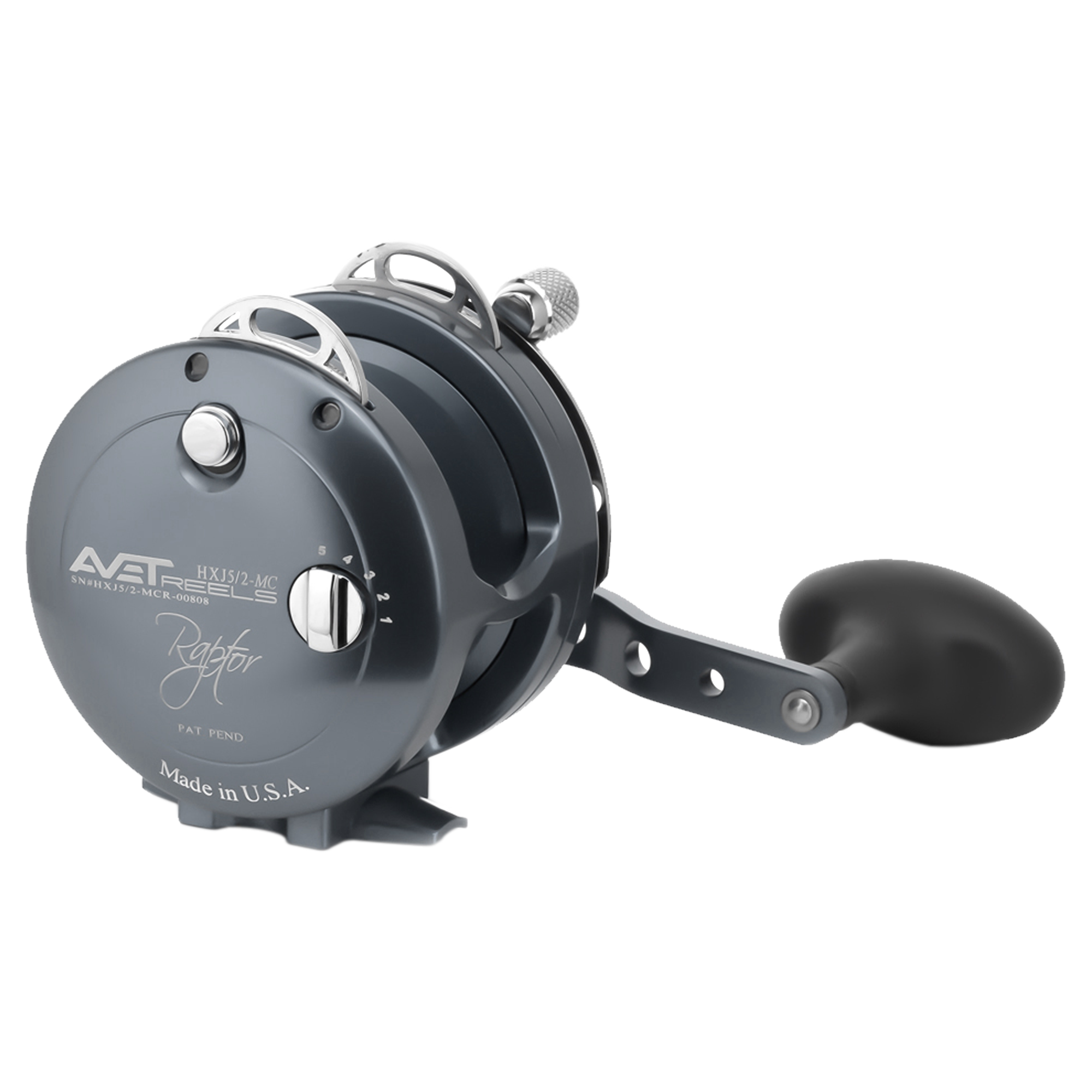 The Avet HXJ 5/2 MC Raptor Reels with Dual Drag features a ratcheting drag cam with the MC (magnetic) cast control which allows for control of spool speed for more manageable casts in varying conditions. The Magic Cast patent pending design also provides a tight firm line and prevents from backlash.