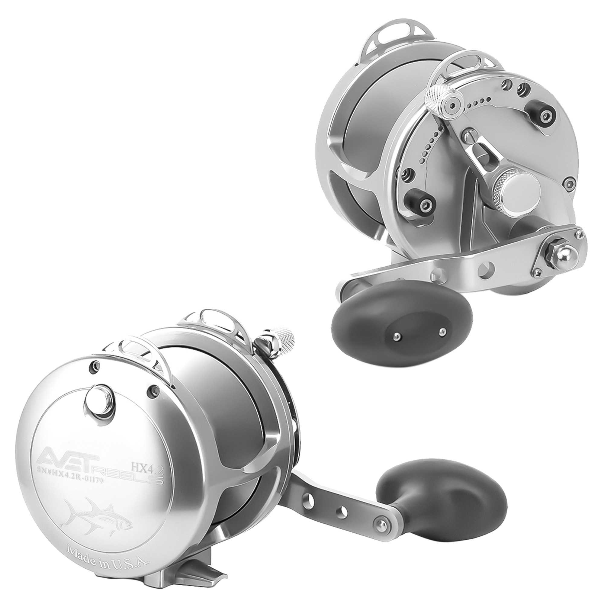 The Avet HXW 4.2 reels will allow you to fish heavier line without the use of spectra and wide enough for heavy top shot with enough room for wind-on leader without losing line capacity. These are exceptional Marlin casters. The Avet HX (Hoo-X) Reels will prove to be one of the most popular reels Avet has ever made. Avet HXW Reels are extremely versatile, perfectly suited for vertical jigging, trolling and casting. With 22 lbs. of drag at strike and 28 lbs. at full, this reel is perfectly suited to mono/spectra top shots. Each reel comes with reel clamps and harness lugs.
