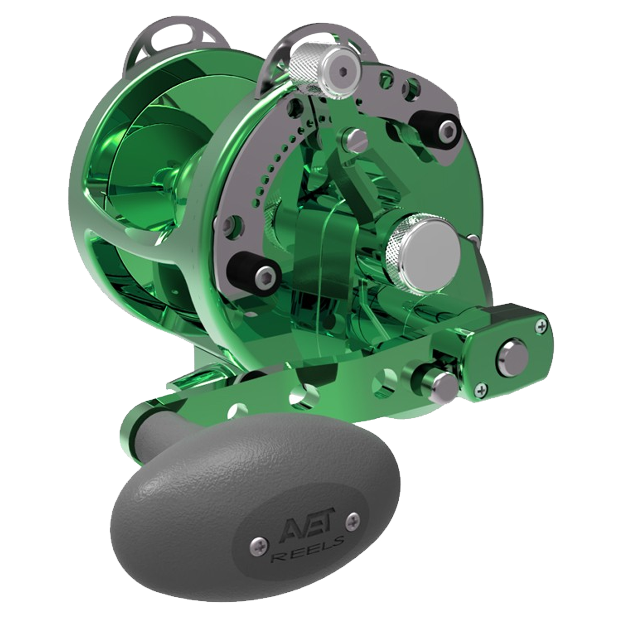 The Avet HXW 5/2 reels will allow you to fish heavier line without the use of spectra and wide enough for heavy top shot with enough room for wind-on leader without losing line capacity. These are exceptional Marlin casters. The Avet HX (Hoo-X) Reels will prove to be one of the most popular reels Avet has ever made. Avet HXW 5/2 Reels feature a 2 speed gearbox for quick line pick up and low-end cranking power. Avet HXW Reels are extremely versatile, perfectly suited for vertical jigging, trolling and casting. With 22 lbs. of drag at strike and 28 lbs. at full, this reel is perfectly suited to mono/spectra top shots. Each reel comes with reel clamps and harness lugs.