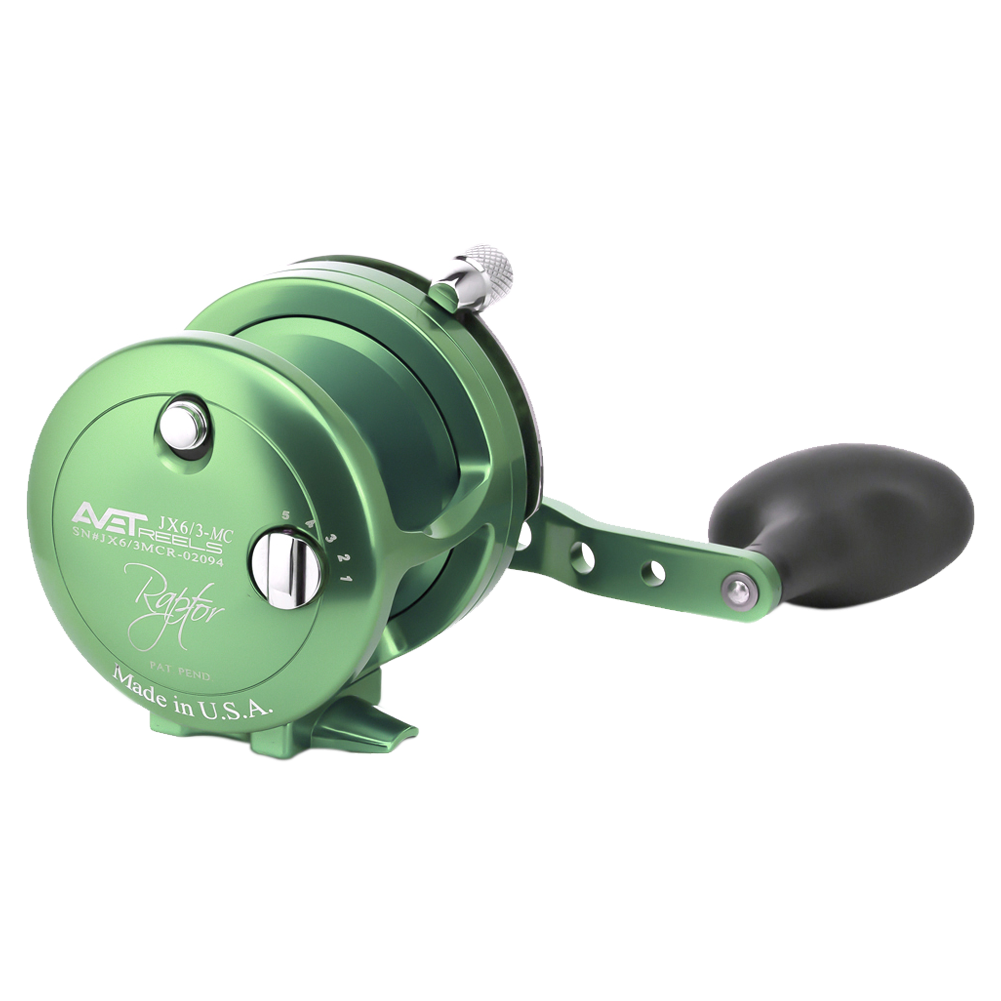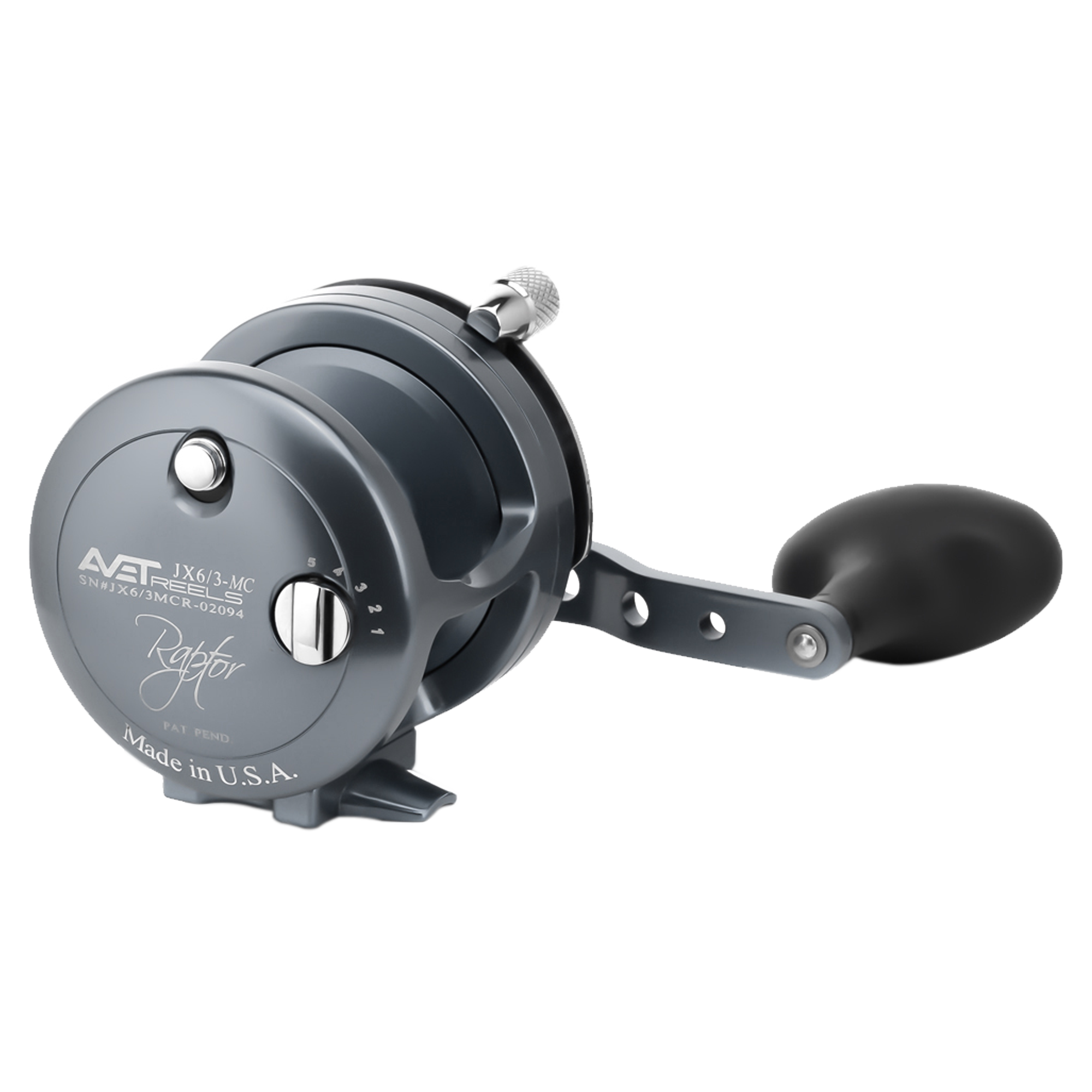 The Avet JX 6/3 MC Raptor Reels with Dual Drag features a ratcheting drag cam with the MC (magnetic) cast control which allows for control of spool speed for more manageable casts in varying conditions. The Magic Cast patent pending design also provides a tight firm line and prevents from backlash. The Avet JX 6/3 Magic Cast Two Speed version provides you high speed line retrieve for jigging and casting, the low gear offers the torque to turn the fishes head once he’s hooked! The Avet JX Magic Cast Series Reels feature the MC (magnetic) cast control which allows for control of spool speed for more manageable casts in varying conditions. The Magic Cast patent pending design also provides a tight firm line and prevents from backlash.
