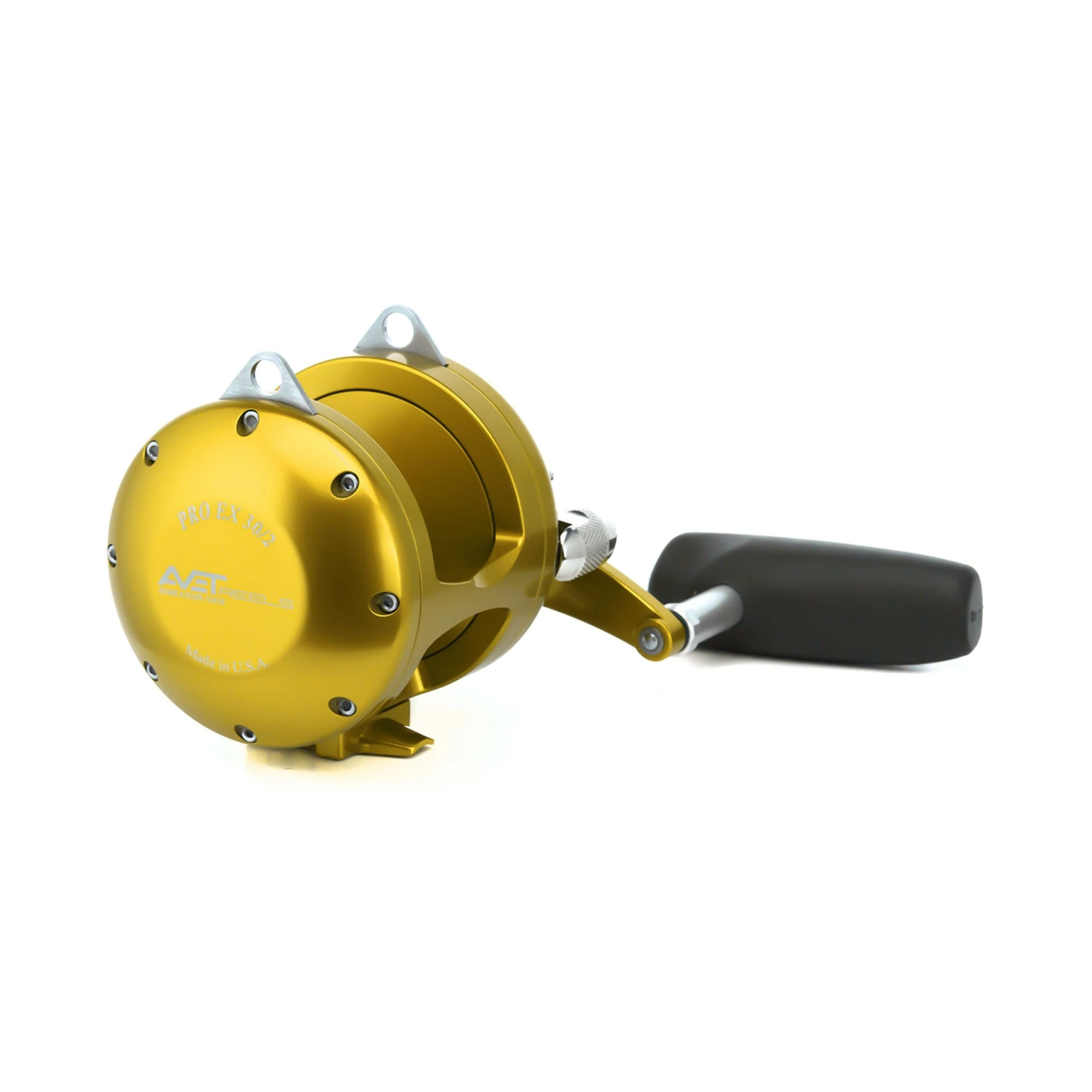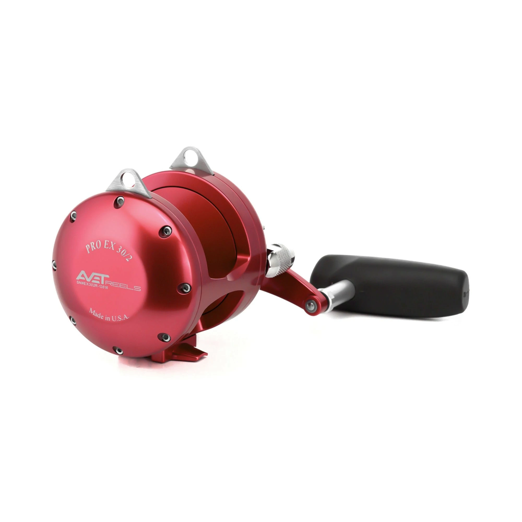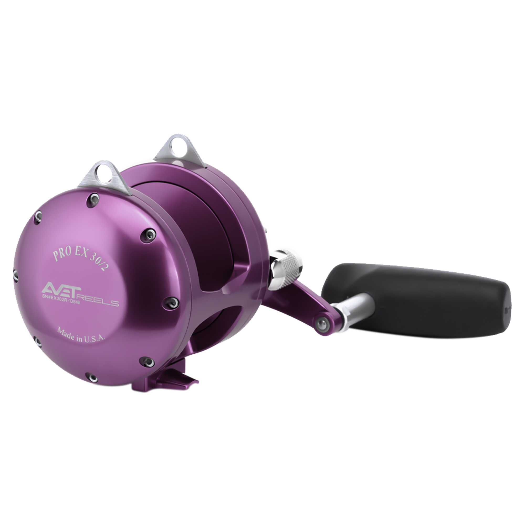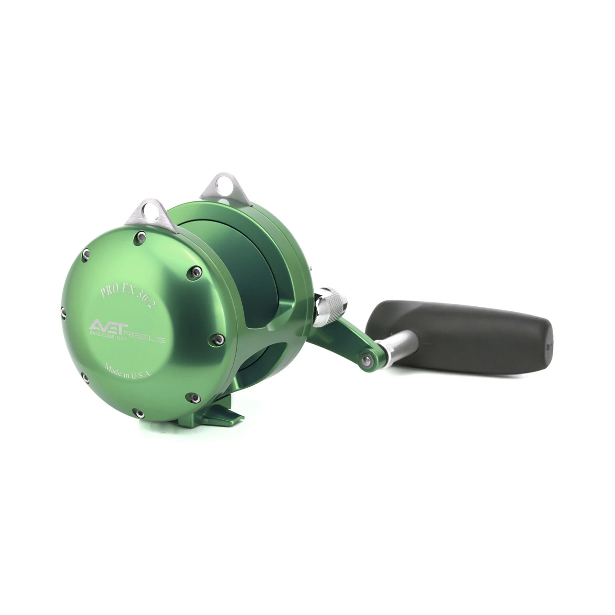 The Avet Pro EX 30/2 Two Speed is a super strong 30 sized reel capable of 35 lbs of drag at strike. Containing reliable dual disc Avedrag dry carbon fiber drags for superior stopping power, smoothness, and wear resistance. These reels will handle fishing heavy spectra and 100 lb. topshots with ease. Extra powerful low gear when brute winch power is needed. Finished off with Anodized coating for superior corrosion resistance. The quality, finish and ruggedness of Avet Pro EX Reels is hard to come by in todays market. Avet Pro EX Series Reels are built to be fished hard. Two speed drag style for high and low gear speeds. Avet Ex Reels feature a topless design for casting ease and thumb control for live bait applications. One Piece machined aluminum frames, 6 stainless ball bearings and heavy duty carbon fiber drag. Great for big game fishing, these reels are built to take all the punishment you can dish out.