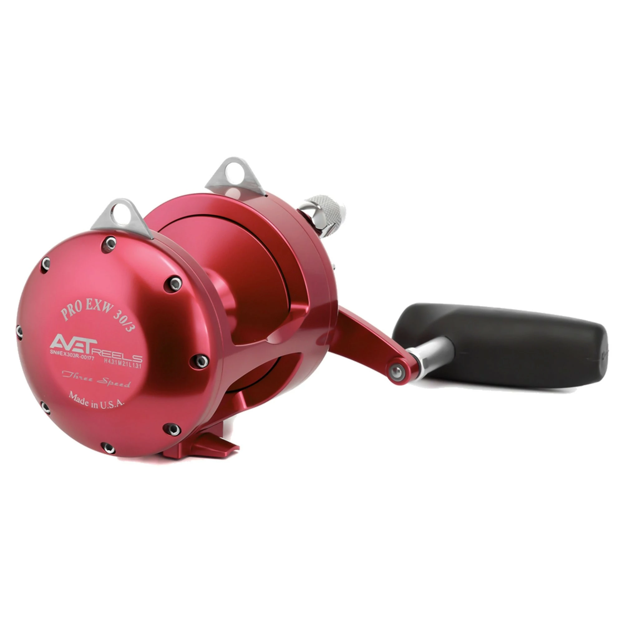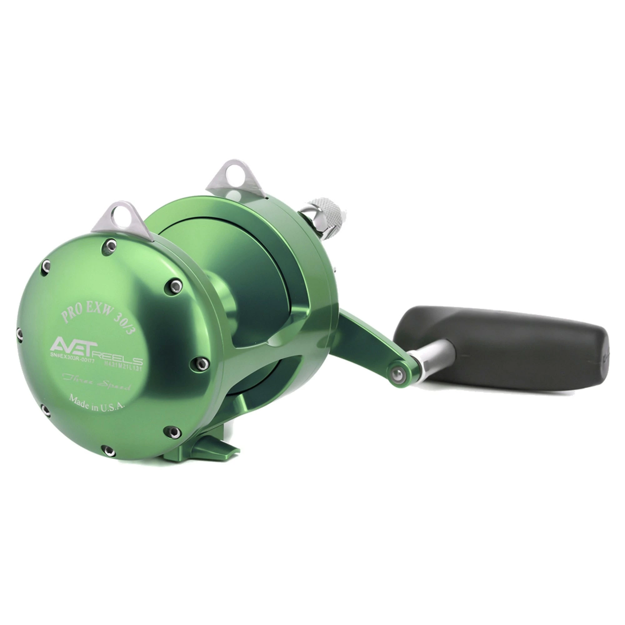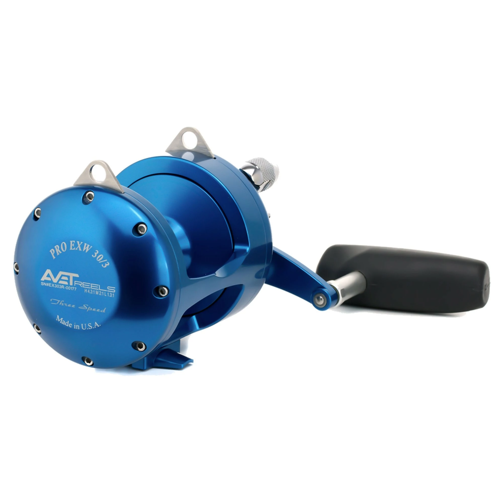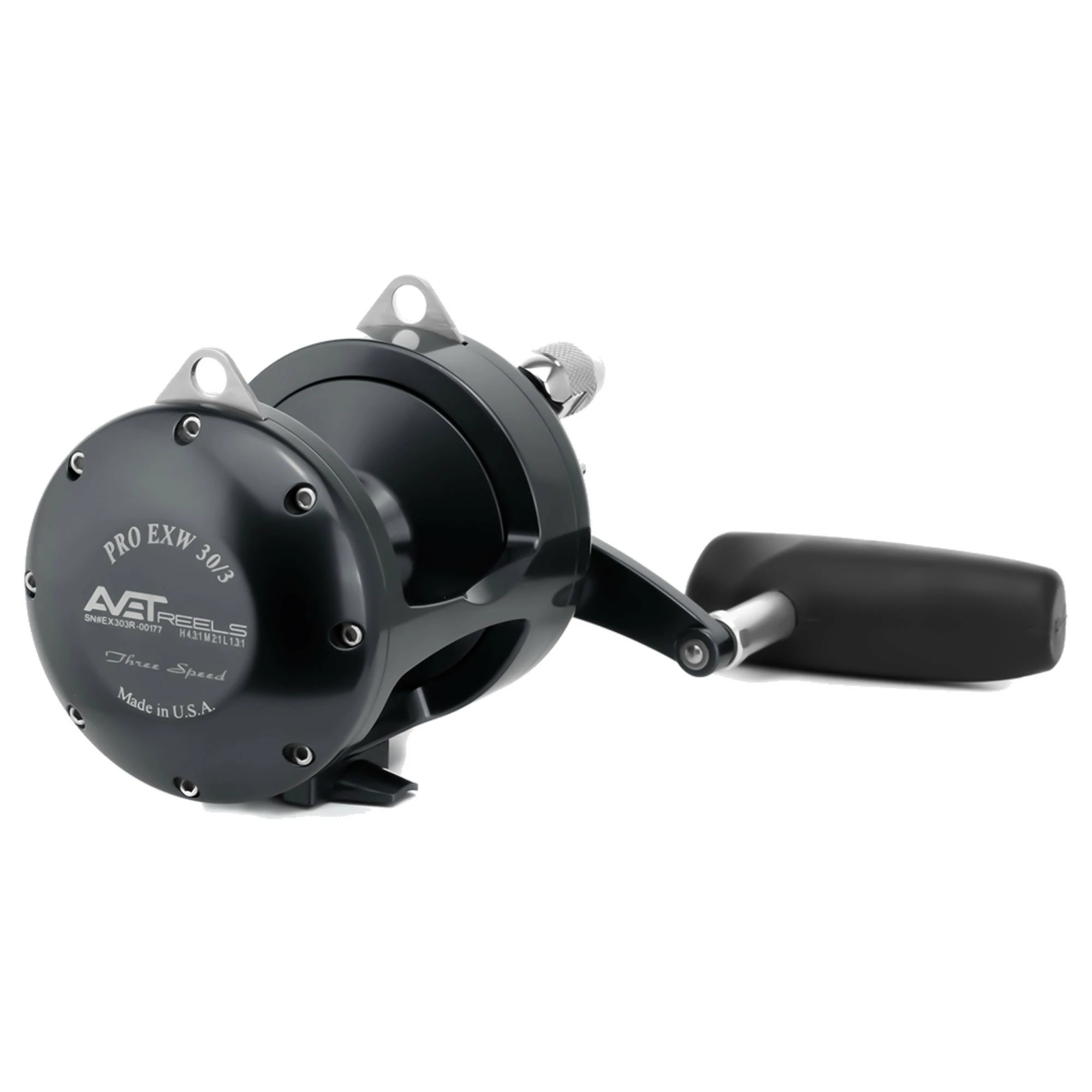 The Avet Pro EXW 30/3 Three Speed Reels features 3 different gear speeds such as high, medium, and low for allowing you to switch to any certain one you need for any scenario. A very easy process due to the powerful lever drag system with adjustable strike pre-set and strike stop button. The high gear allows you to clear trolled lines at a very high speed, which is great for the kite. The Medium gear allows you to fight extra tough big game fish. The low gear brings in that extra strength when that brute winch power is needed. These reels have reliable dual disc Avedrag dry carbon fiber drags for superior stopping power, smoothness, and wear resistance. These are very reliable and tough reels.