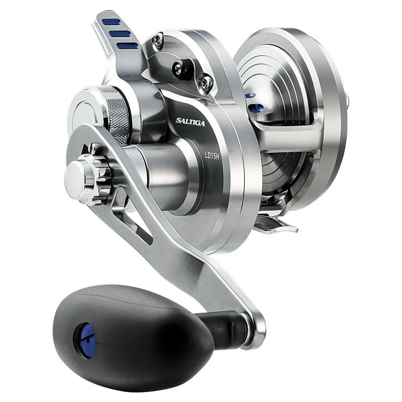 Daiwa Saltiga Lever Drag Single Speed Reels feature a solid one piece machined aluminum frame. The stainless steel gears and Corrosion Resistant Ball Bearings are designed to provide high power and smooth winding.