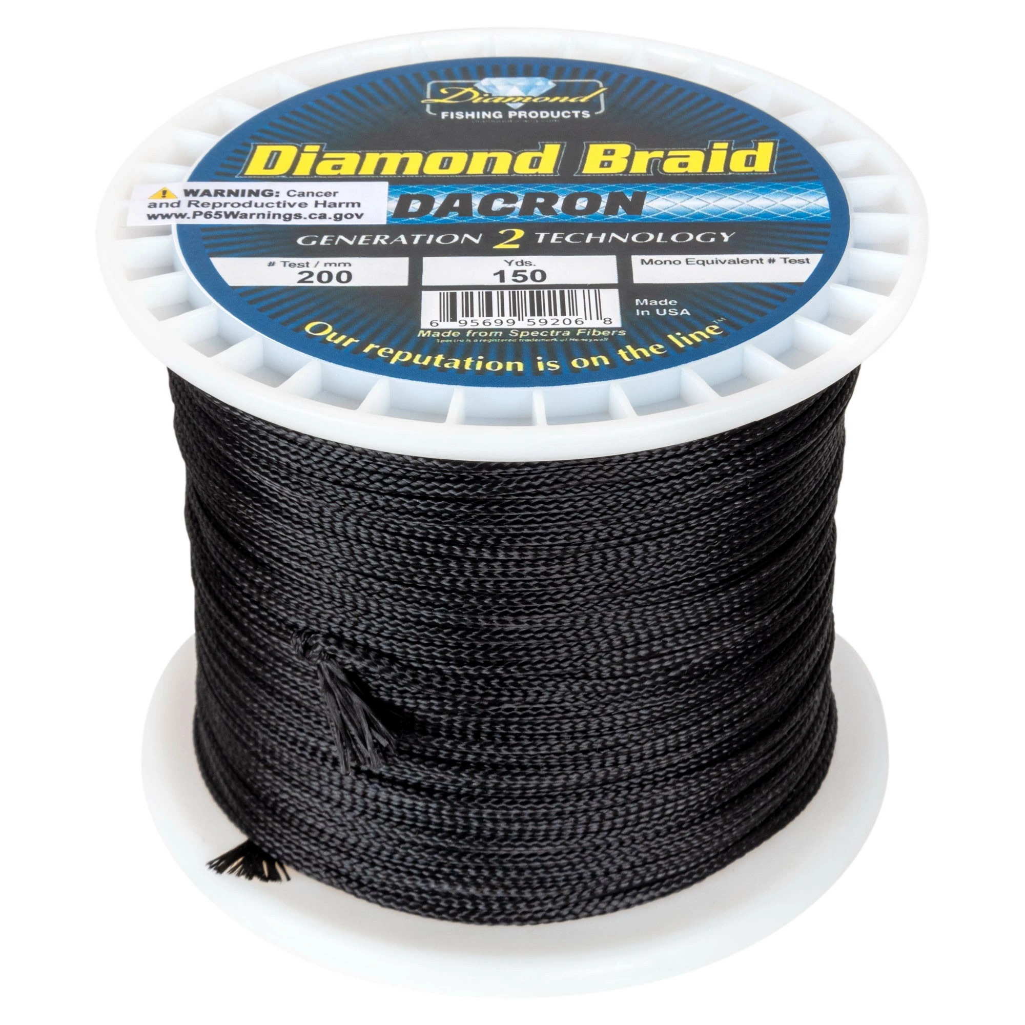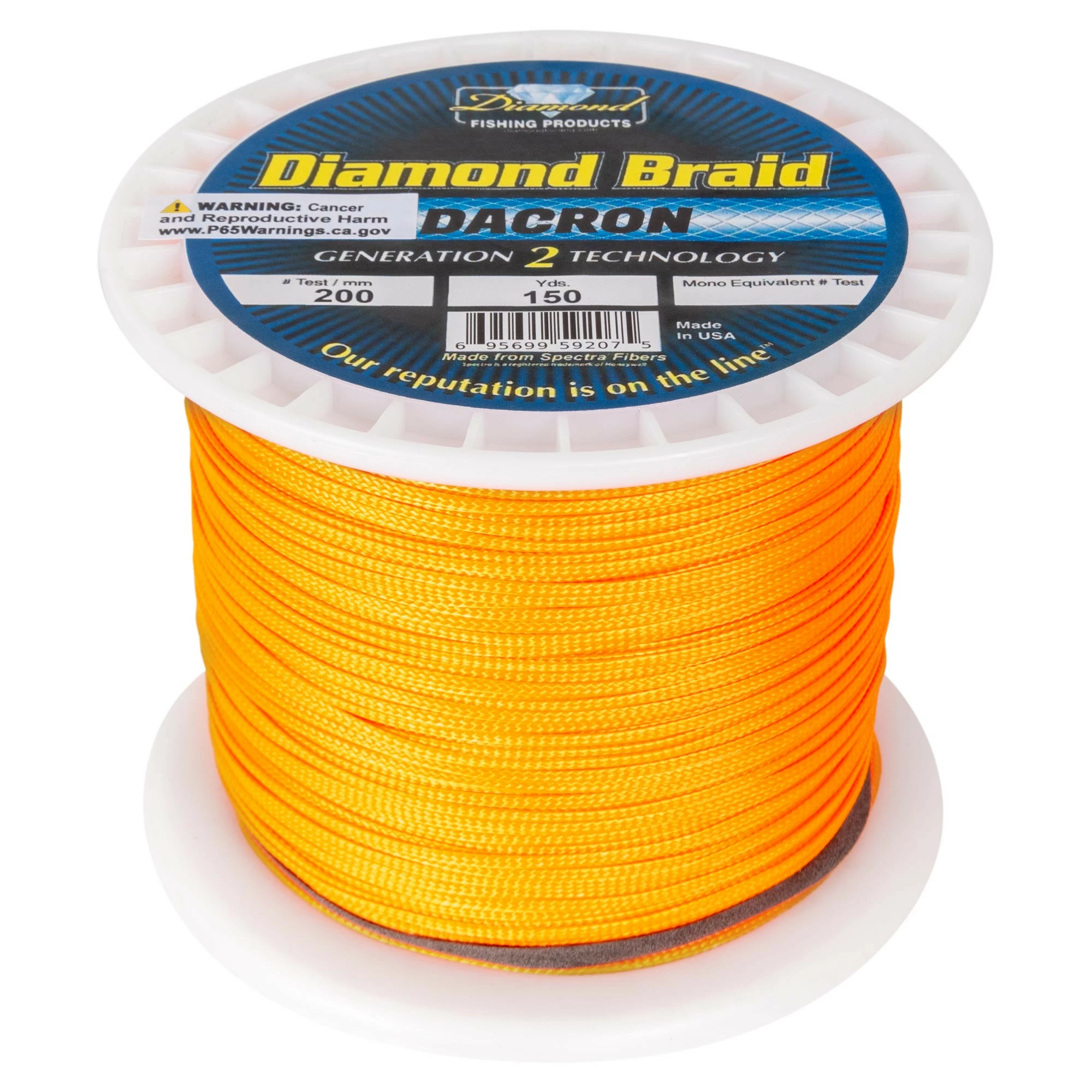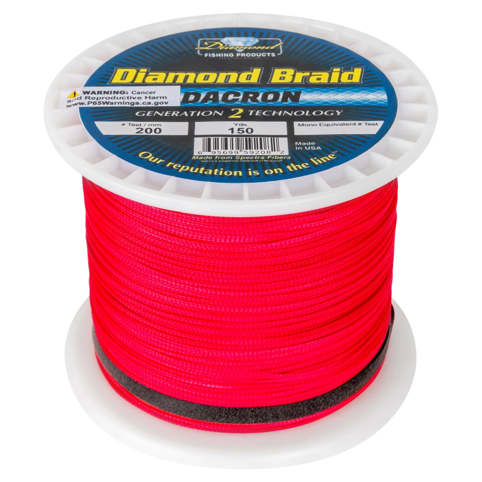 The Diamond Braided Dacron Line is apart of Diamond Fishing Products great Generation 2 Technology and comes in 150 yd. spool length on 200 lb. test. Available in Black, Orange, or Pink line color.