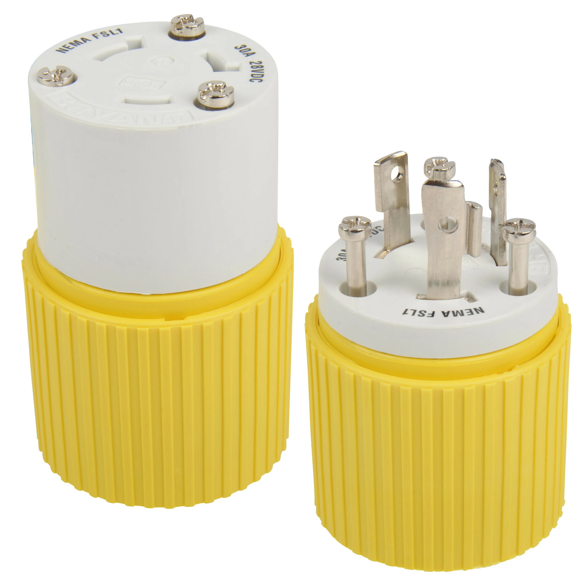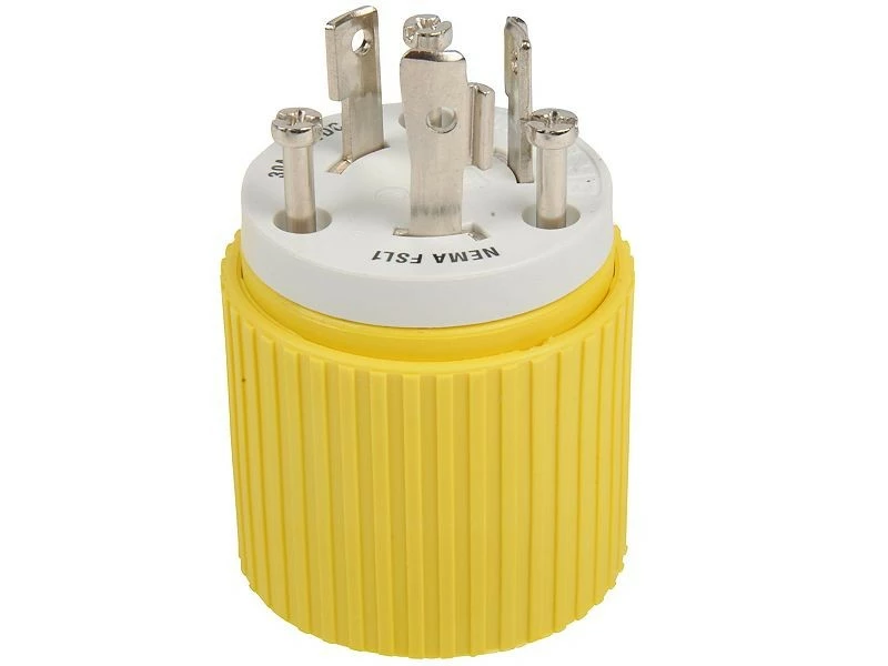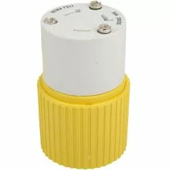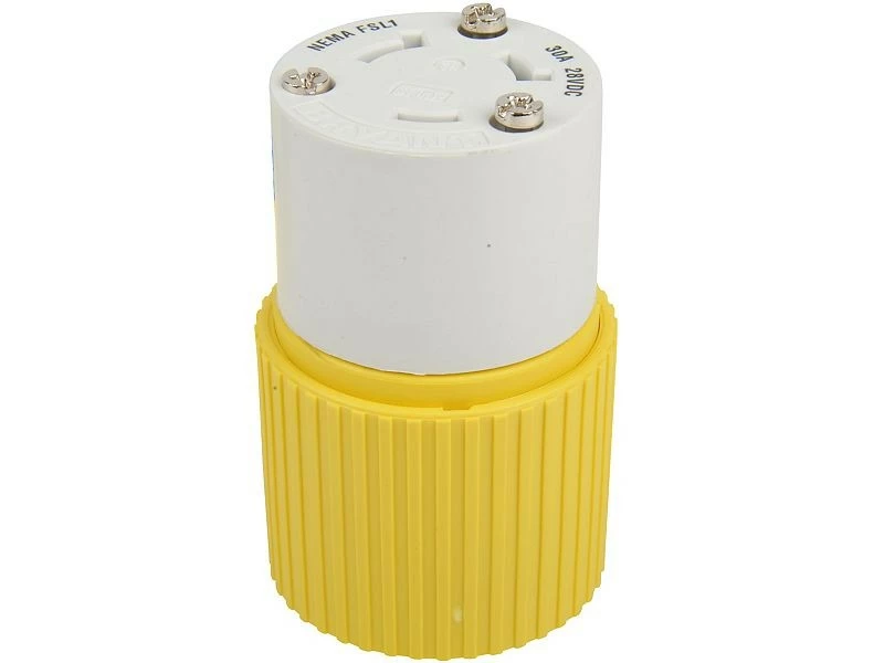 The Hubbell Yellow Locking Plug are built with a rugged nylon housing and rear dust seal that is designed to keep dust and foreign matter out. The high-visibility nylon is impact resistant and UV stabilized for longer life, and the contacts are nickel-plated for corrosion resistance. This device is rated at 28V DC and applicable for all 12, 24 and 32 Volt DC fishing reel systems. It is also UL listed and CSA certified.