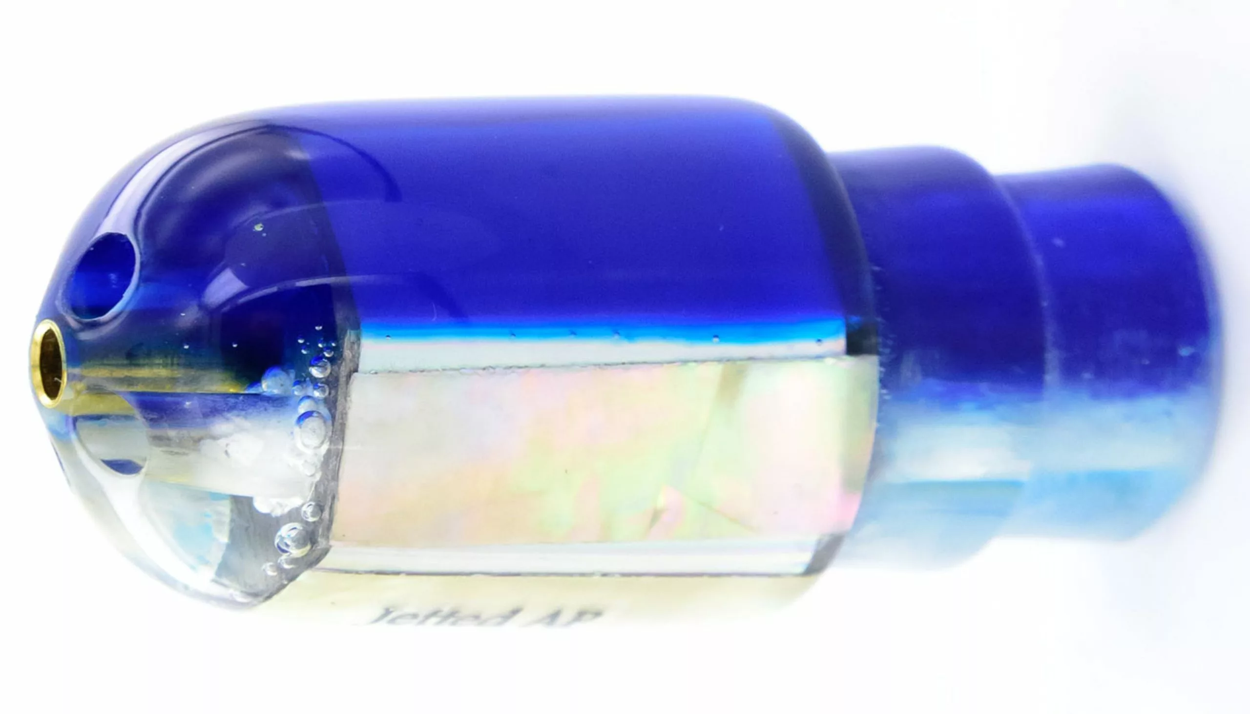 Marlin Magic Ahi Pussy Bullet Jet features four flow-thru jets, creating an impressive bubble trail behind it. The AP Bullet Jet is “standard” lure size in the Marlin Magic AP family of lures. Its 8″ length not only makes it attractive to all sizes of Yellowfin, Bluefin, Bigeye, and Blackfin, it’s a great bait for Mahi Mahi and Wahoo as well! This lure works excellent when ran in shotgun position. Approximately 8″ in length, best rigged with 9/0 hook.