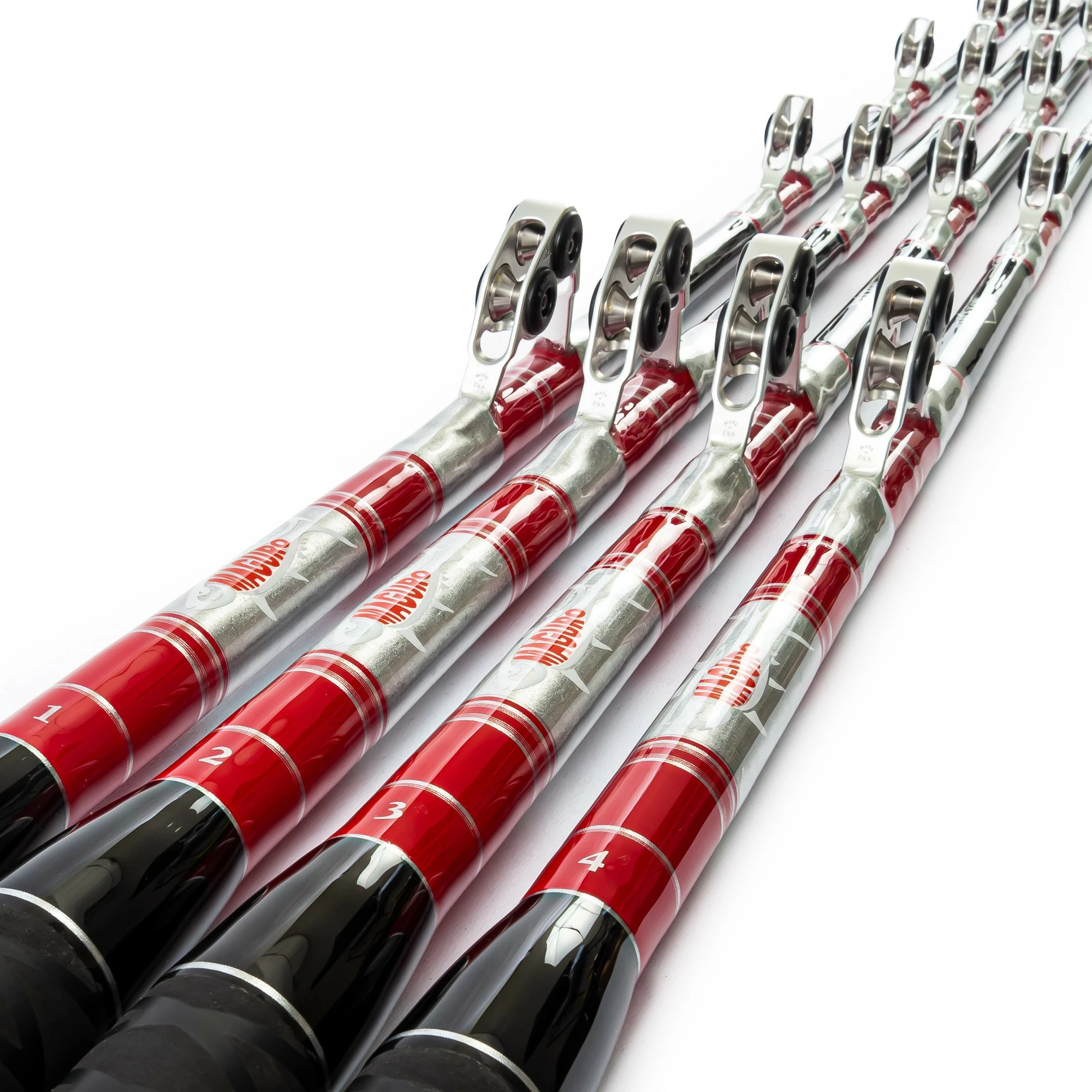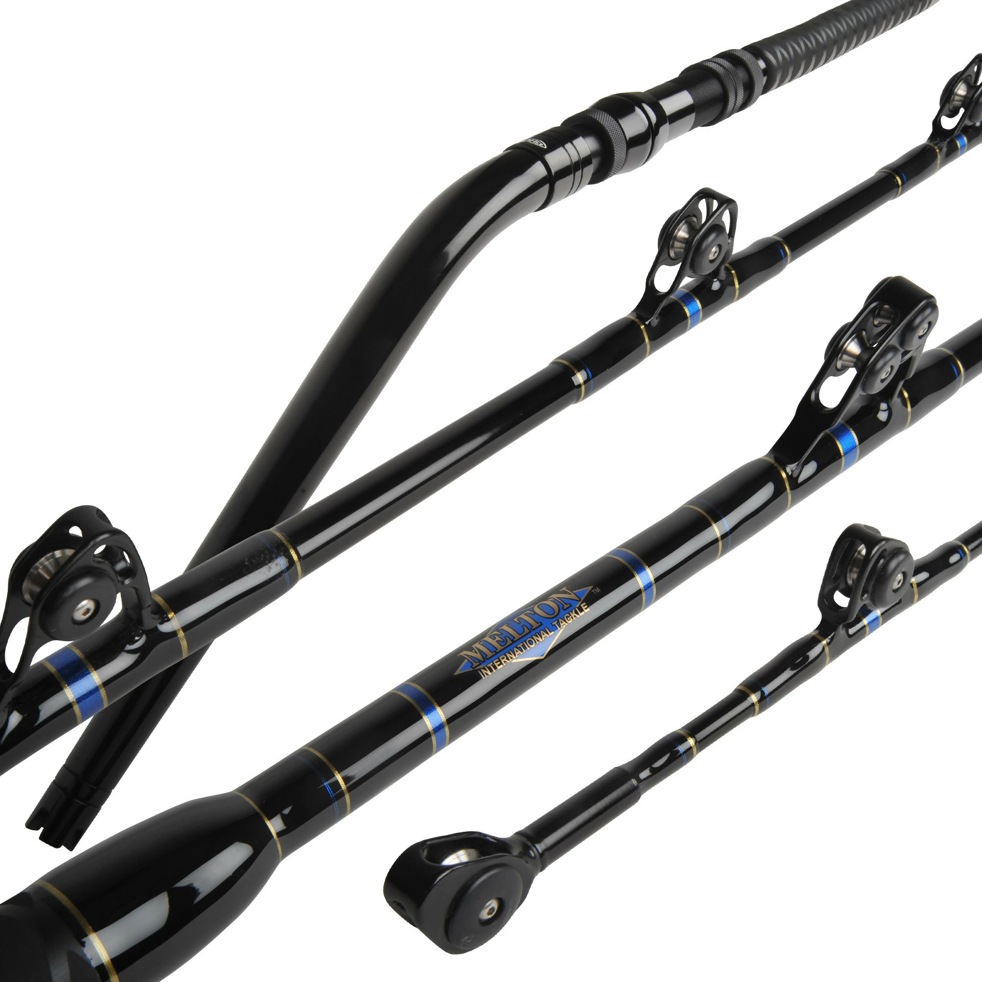 Made in the USA, the Melton Tackle GBF Bluefin Gunnel Rods are made specifically for tuna fisherman that require no compromises and superior components. Targeting the largest Tuna that swim the oceans, these rods are custom built using the finest blanks, guides and butts in the industry. Trust Melton’s rod building expertise and unparalleled partner resources to build your next Custom giant tuna rod. These Extra Long Rods are built with softer tips to keep the fish away from the boat and reduce pulled hooks that often accompany shorter/stiffer rods. All rods are sold BLADE ONLY which means you can use your own butts or optional butts that we offer. Both models feature a #6 Ferrule to accommodate the largest 130# class reels. Rods are ideally suited for 130#-200# test. These rods are described as having an 80Lb tip section or an 80/130 with a stiffer tip and then huge power down low. If you like the rod to bend further and are using it on the medium giants, the 80L is plenty to land everything, it will just flex more. The 80/130 has a stiffer tip section and is better suited on the Giants 500# plus size fish.