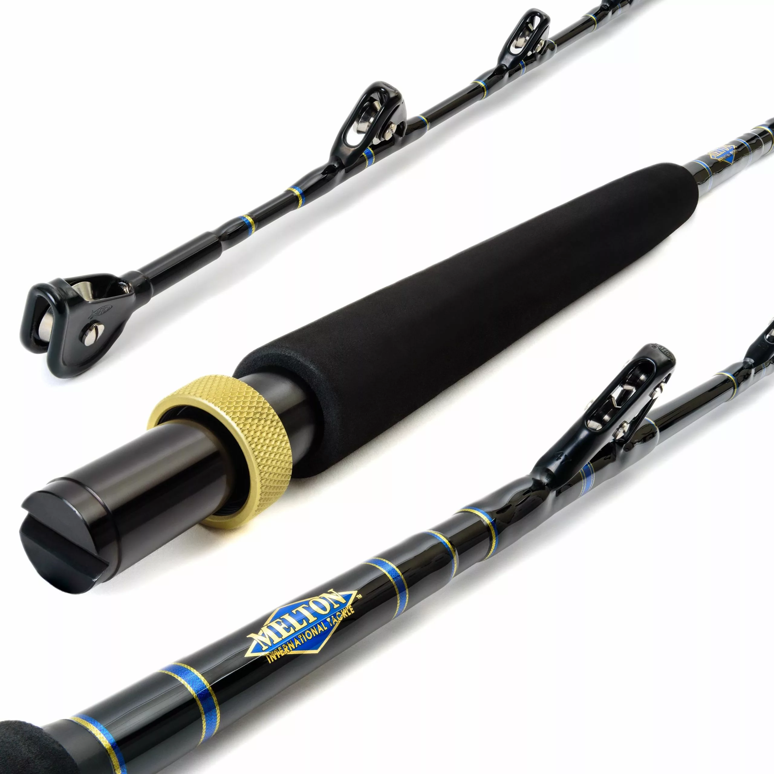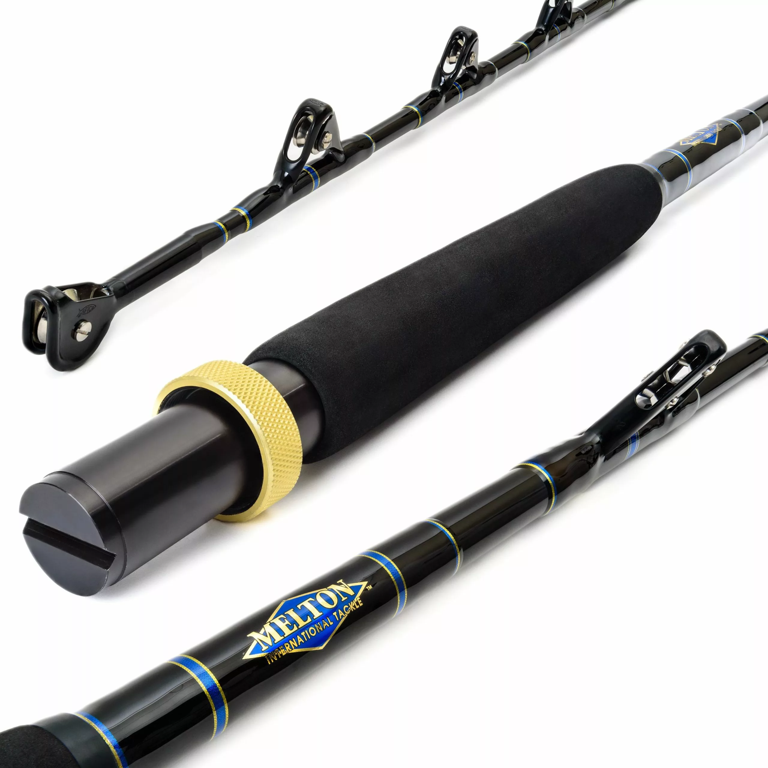 Melton Tackle Tournament IGFA Trolling Rods provide super value in a big game trolling rod. Don’t let the modest price fool you…you can’t imagine how nice these are. The same fine workmanship goes into this series as the rest of the Melton Tackle rods. Built on special E-Glass blanks, and triple wrapped for durability and strength. Fitted with AFTCO black and silver guides, a contoured EVA/Veltex grip, and finally fitted with a durable machined black and gold aluminum butt. If you are in the market for a quality no nonsense big game trolling rod, these represent the very best value on the market.