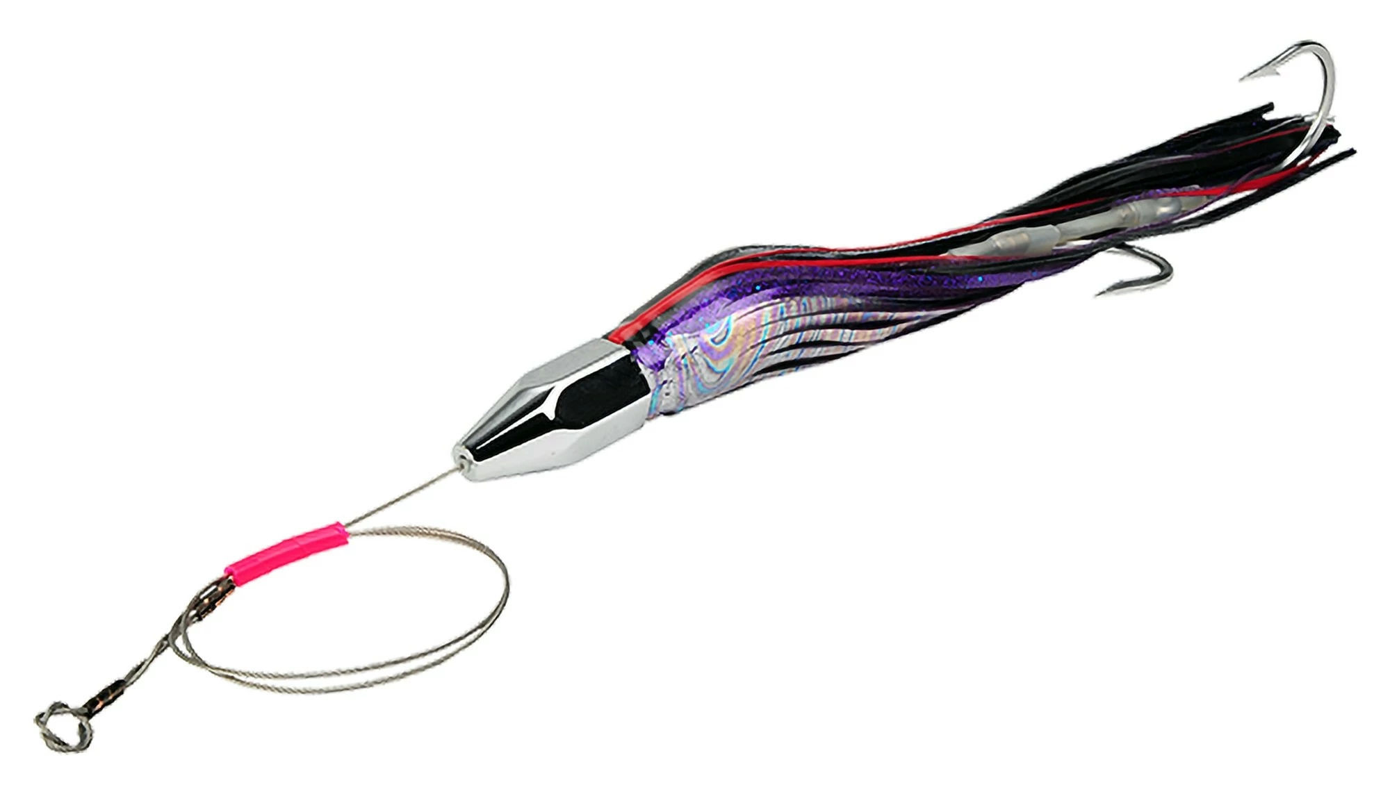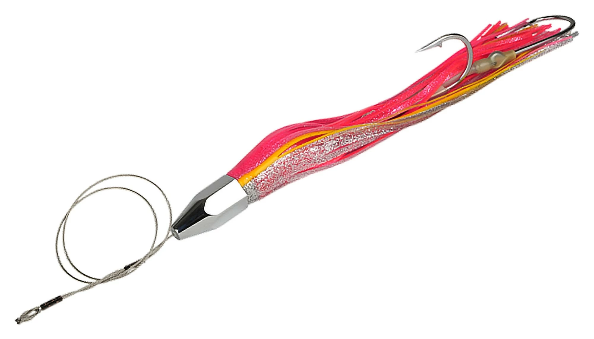 The Melton Bomber Jets are designed to be a deeper running lure, the Melton Tackle Bomber Jet is a Wahoo magnet! Machined from solid brass for added weight and stability in the water. Run from either rigger or shotgun. Will run deep, drawing repeated strikes from Wahoo, Bigeye Tuna, Yellowfin Tuna, and Marlin. Now available Wahoo Rigged with 90 degree hook set and cable, all set and ready to go!