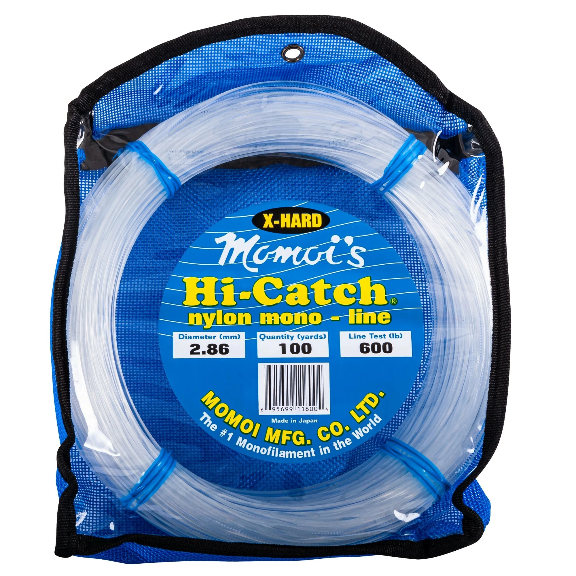 Momoi Hi-Catch Xtra-Hard Monofilament Leader the ultimate leader material when extremely high tensile strength and abrasion resistance are required. This monofilament is produced with a hard outer coating to resist abrasion and for those applications where a stiffer leader is required. Available in Clear only.