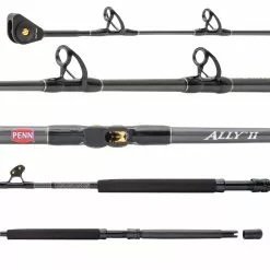 The PENN® Ally II Roller Stripper/Tip Conventional Boat Rods have the power and durability you need for offshore saltwater fishing. The rods are crafted from an incredibly tough, tubular E-glass rod blank with a solid glass tip, able to withstand the strain of big, hard fighting fish. The blank is outfitted combination of Seaguide® Stainless Steel guides with zirconium inserts, and a PacBay® machined aluminum roller guide and tip. Both rollers maintain a large knot clearance and are placed in key, high-stress areas, to extend the life of your line by reducing friction. The PacBay® Roller Guides utilize a durable, one piece frame that is machine from solid marine grade aluminum. The aluminum rollers come standard with Teflon coated stainless steel bearings and aluminum side plates, increasing the guide strength.