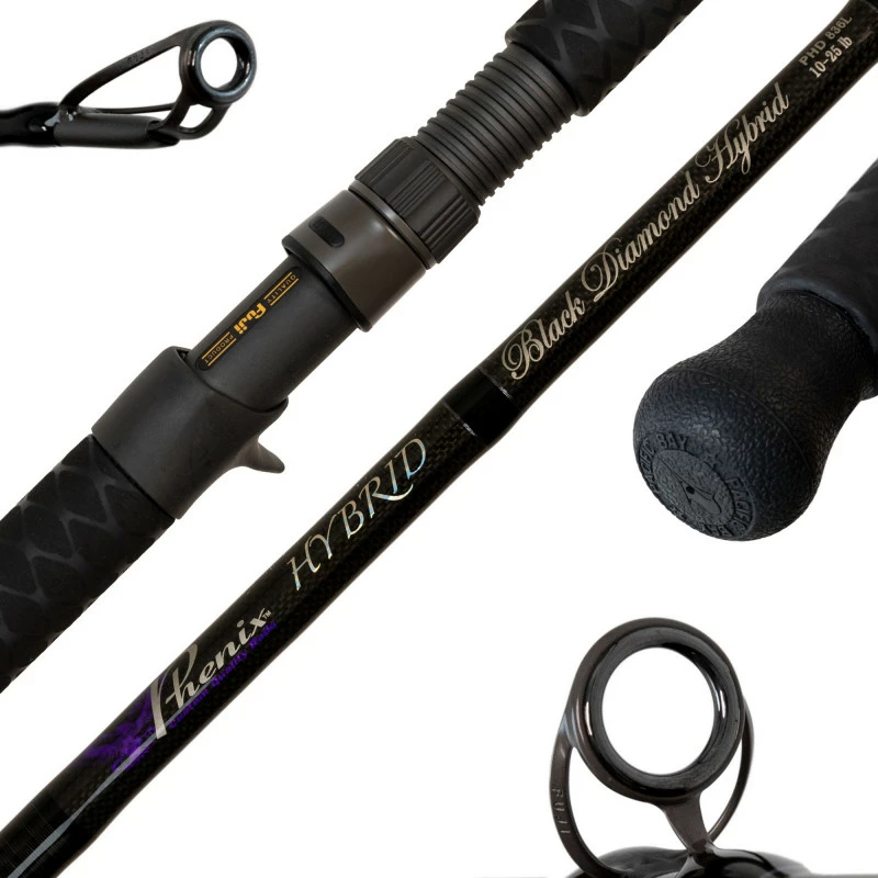 The Black Diamond Hybrid is the world’s first fully woven Carbon Fiber blank. The blank is a unique blend of high strength materials, the latest in aerospace technology, and the latest in the automotive industry. After years of R & D, Phenix has successfully applied this technology into their Black Diamond Hybrid. Engineered with lightweight and unbelievable strength in mind, the Black Diamond Hybrid delivers an action that is far superior to any traditional glass or graphite blank.