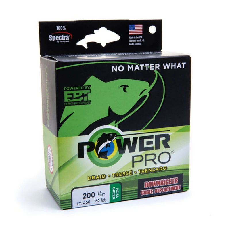 PowerPro Downrigger monofilament braided line will deliver the sensitivity, strength, near zero stretch and silence needed to catch more, whether you’re running deep with trolling weights, planar devices or downriggers (manual or electric). Your downrigger balls will fall more vertically with less blowback than with conventional steel cables – plus you won’t have to deal with the electrostatic hum!