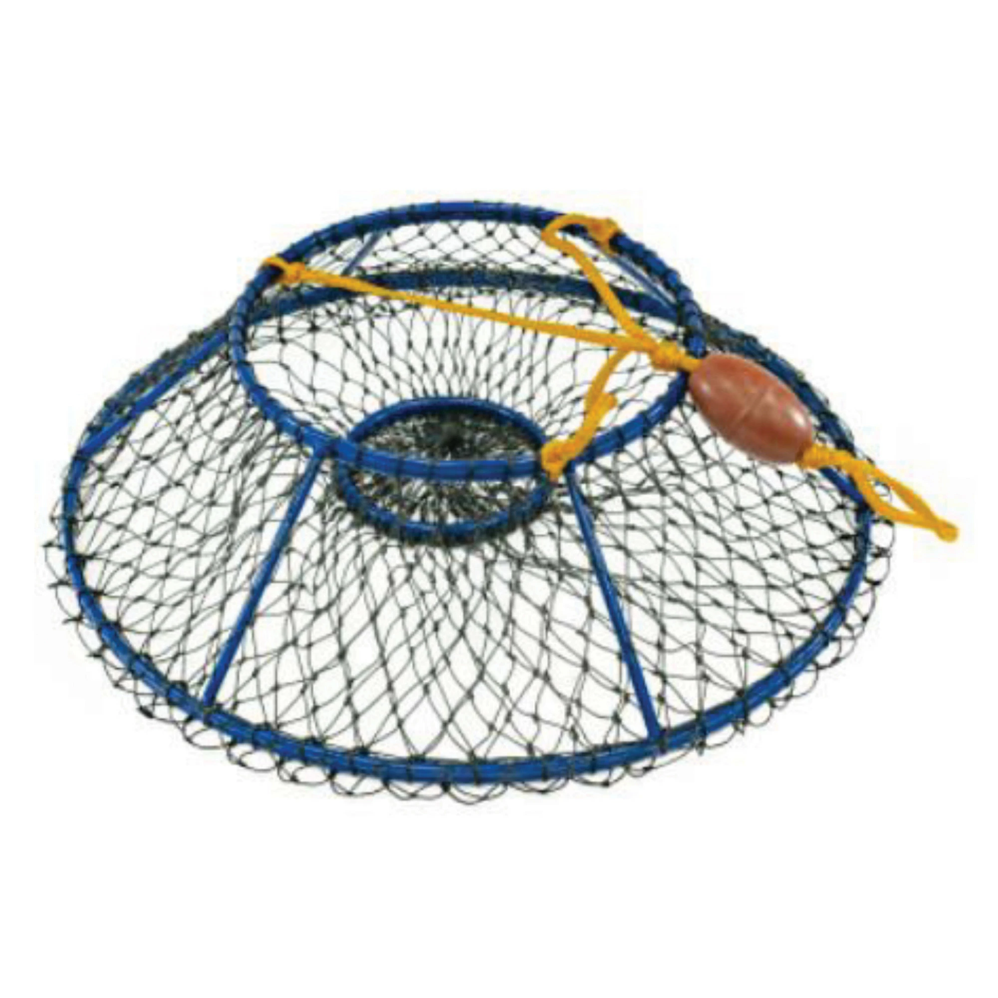 These Promar Ambush Hoop Nets are optimized for catching lobsters and crabs. Catch more large crustaceans such as lobsters from the larger volume provided by the steep angles, which also provides the additional benefit of helping to retain more of your catch. The rigid steel frame and top ring is shielded from the elements by the blue ocean vinyl protective coating. The stealthy blue also helps to blend the hoop net into the underwater environment. These nets are supported by 6 fixed welded posts that provide solid and stable hauls, and also come complete with patented built in bait pouch, weighted steel ring, heavy duty black harness and quality bridle float.