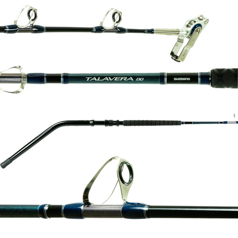 Shimano Talavera Bluewater Deep Drop Rods are built from a durable blank with quality Alps aluminum oxide guides, swivel roller tip and curved aluminum butt. The roller tip helps to reduce stress on the rod when fighting aggressive fish. These rods are available in two models; one with medium heavy power and 50 to 100 lbs braided line rating, and the other with heavy power and 65 to 130 lbs braided line rating. The Talavera Bluewater rods provide anglers strong, long-lasting performance that’s ready to stand up to harsh conditions for years to come.