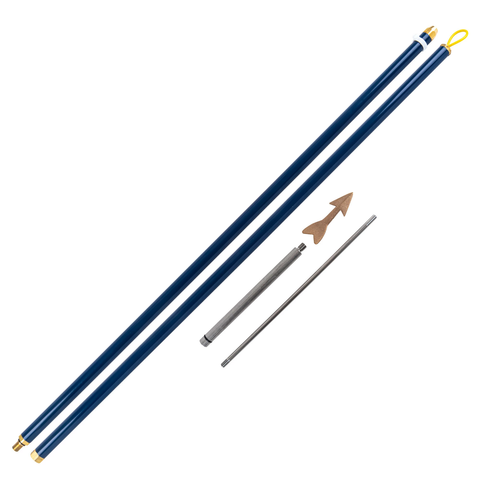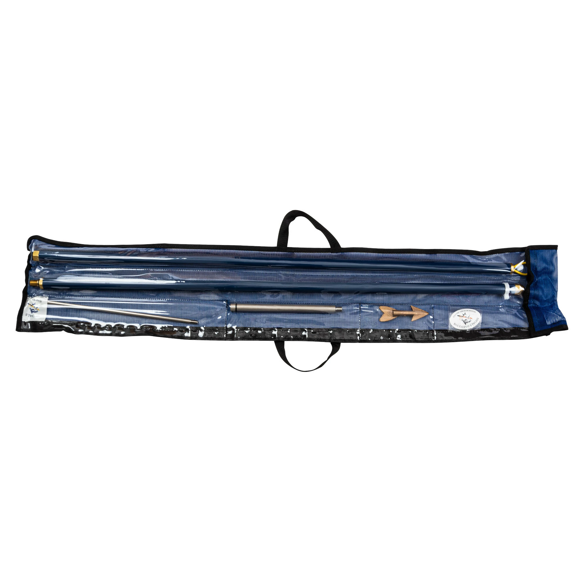 The Shoals two piece harpoon is made of aircraft grade 6061-T aluminum. It is hard marine powder coated Blue fitted with marine bronze fittings and 316 stainless steel shank/pike. It has a special sealing system which allows us to use no pins or rivets in the construction with a Delran line holder for the harpoon which keeps the dart on the shank without the use of tape. This harpoon was made and designed with extreme attention to detail and quality by New England anglers who have a passion for tuna fishing, New England’s number one harpoon. Made in USA.