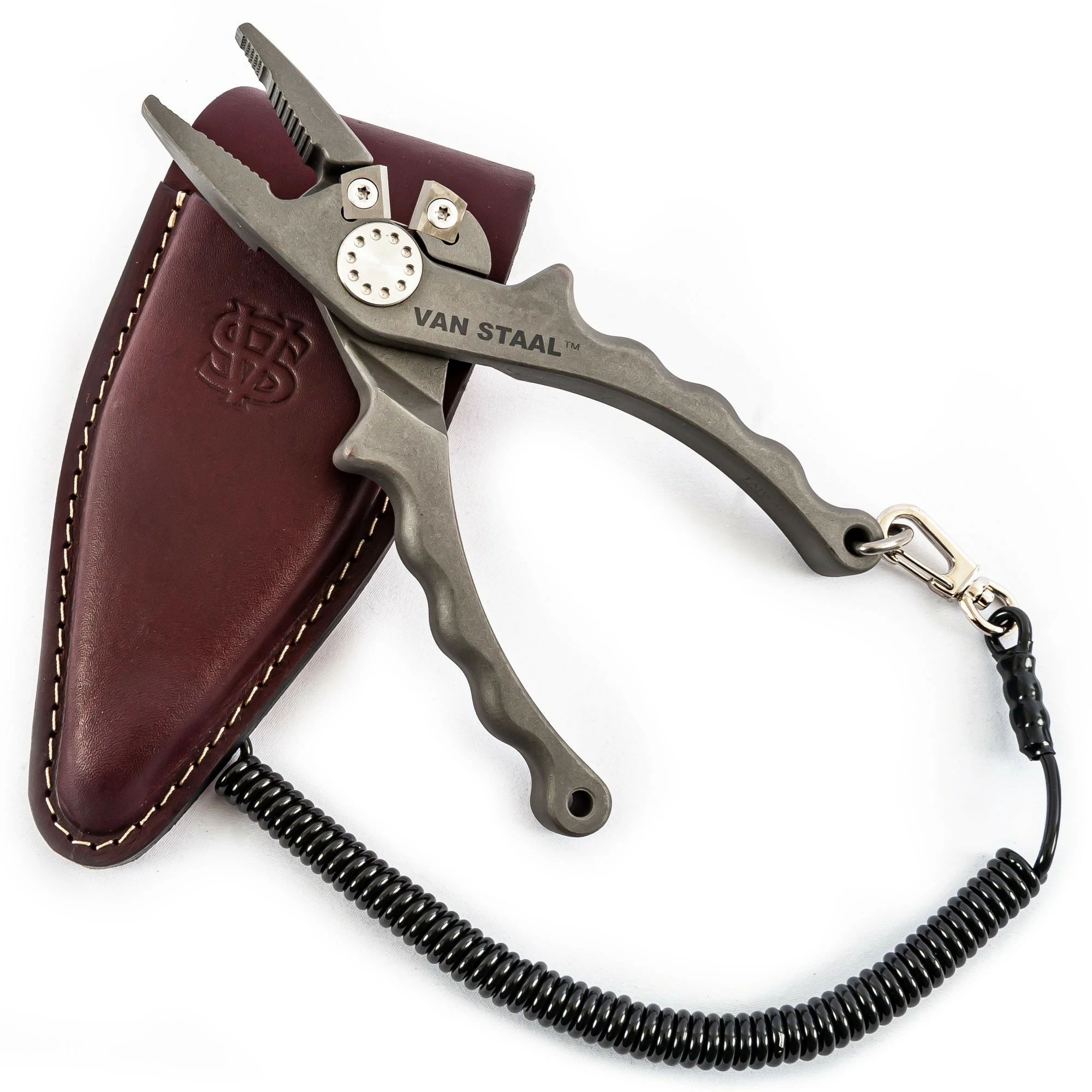Corrosion-free in the worst saltwater conditions, nothing else comes close to Van Staal 7″ Titanium Offshore Pliers. Van Staal Titanium Pliers are remarkably tough and light. With spring-loaded ergonomic handles, a unique line-keeper feature, and replaceable tungsten cutters and anvils, these pliers make the cut consistently and smoothly on both braided and gel spun lines. Plus, optional sheaths and lanyards are available to always keep your Van Staal pliers safely within reach.